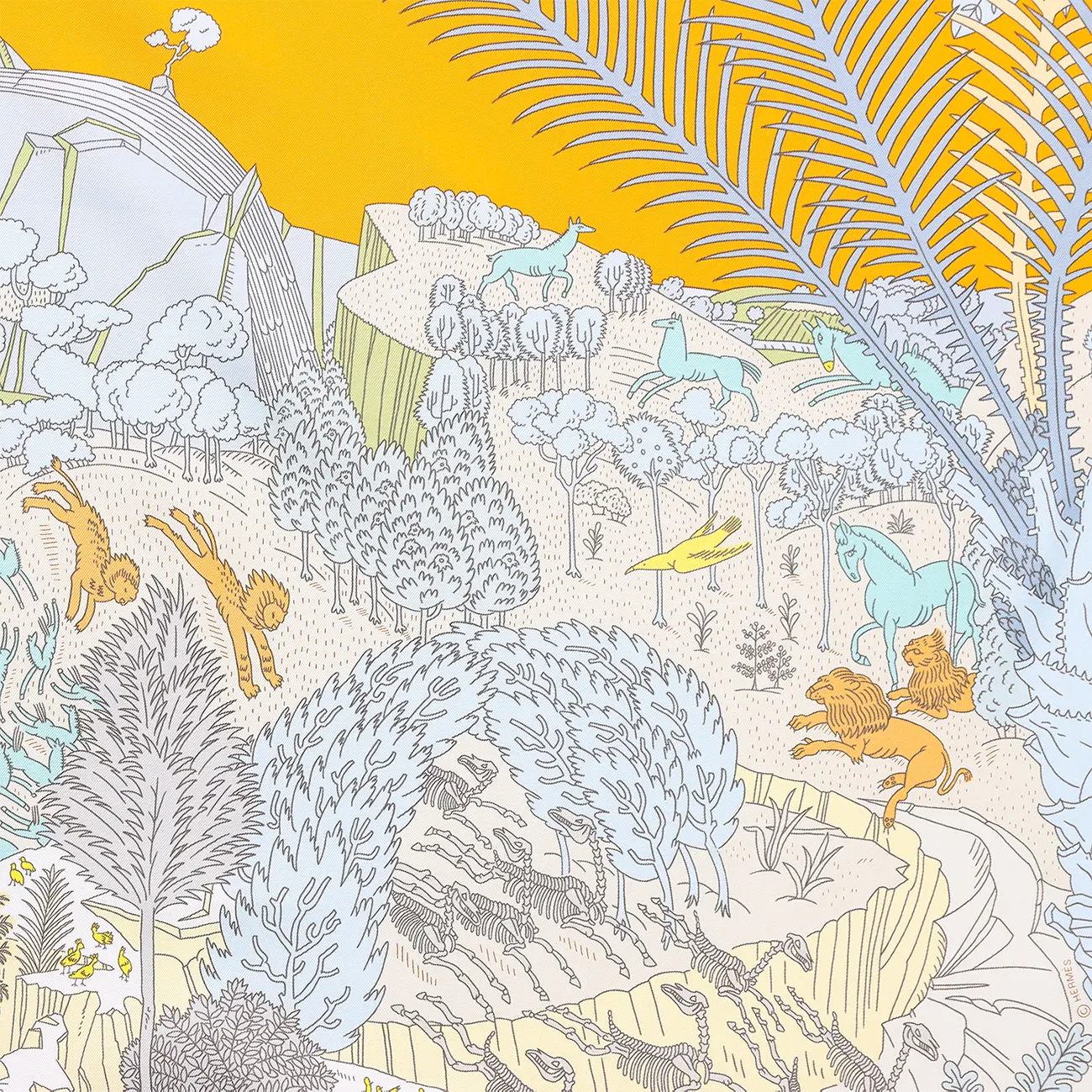 HERMES Шёлковый платок, Chrysanthemum Yellow/Light Green/Gray Green