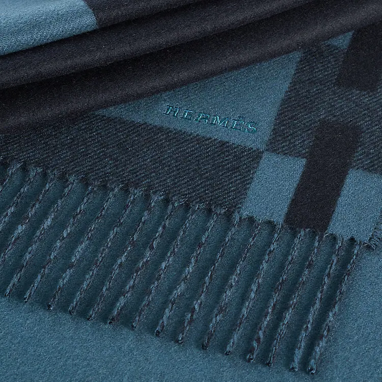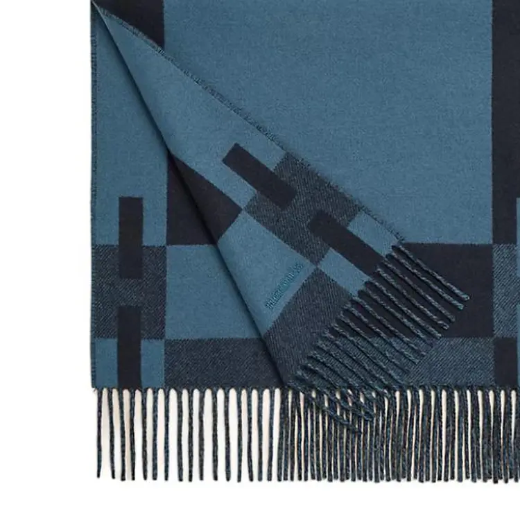 HERMES Кашемировый вязаный шарф мужской синий, Blue