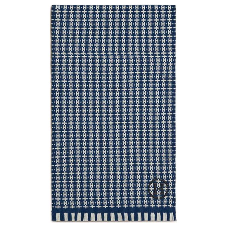 HERMES Кашемировый вязаный шарф мужской синий, Blue