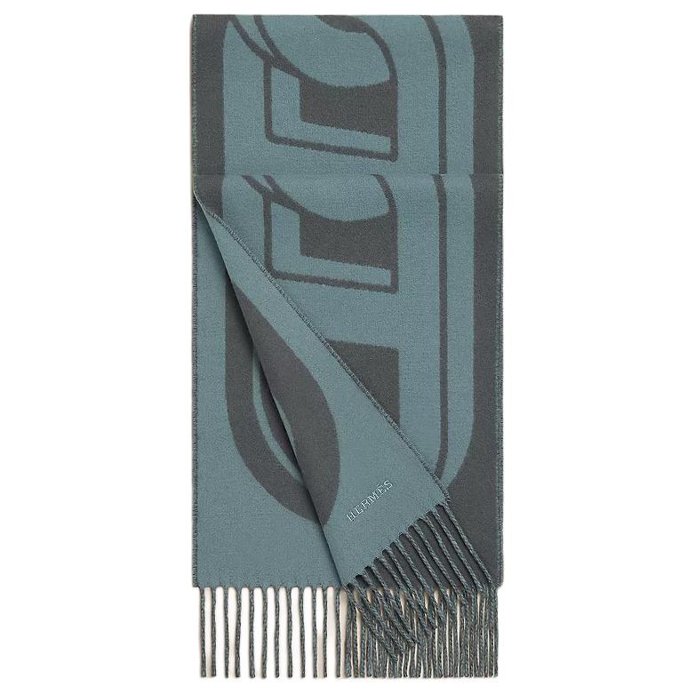 HERMES Кашемировый вязаный шарф мужской синий, Blue