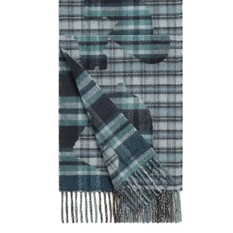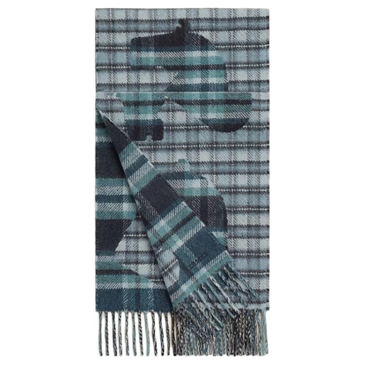HERMES Кашемировый вязаный шарф мужской синий, Blue