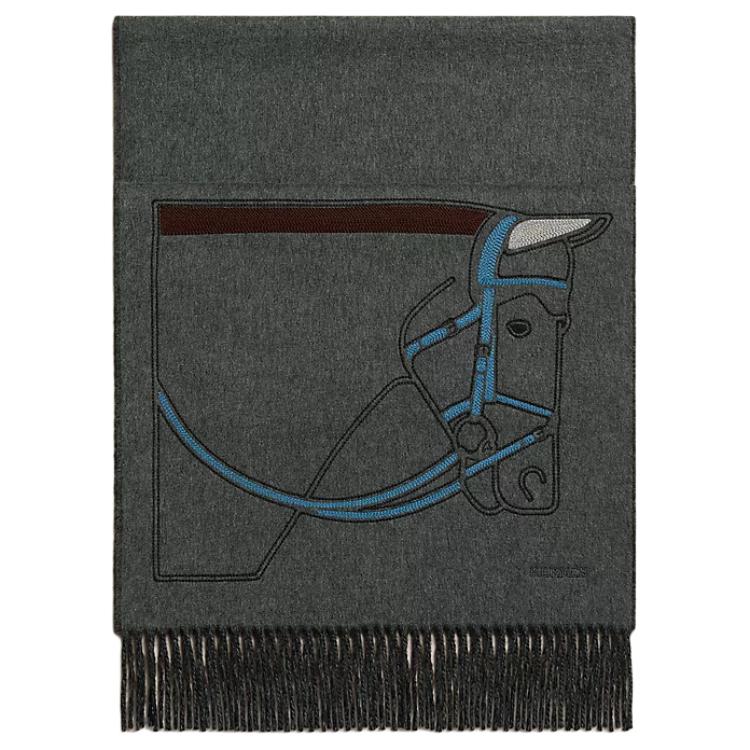 HERMES Кашемировый шарф унисекс черный, Black
