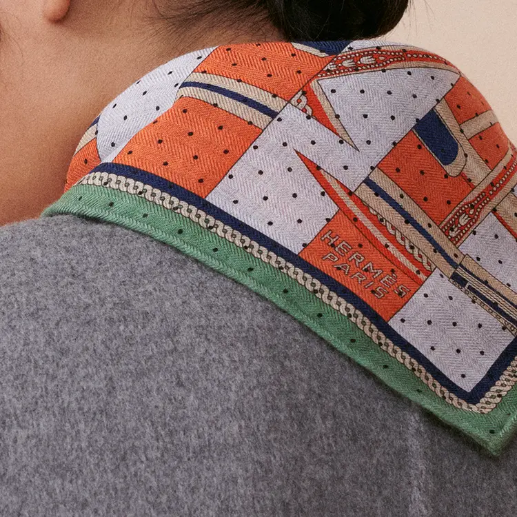 HERMES Шёлковый кашемировый шарф, Gray