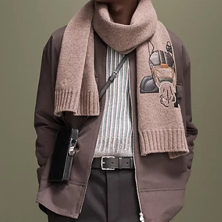 HERMES Вязаный шарф мужской, Brown