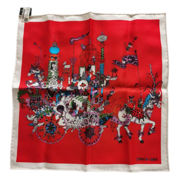 HERMES Шелковый шарф унисекс красный, Red