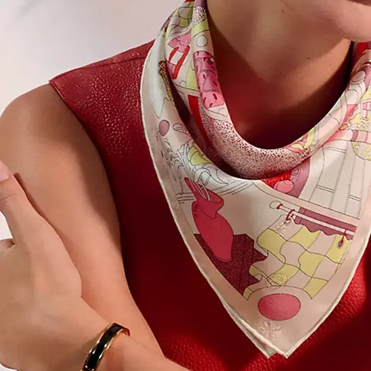 HERMES Шёлковый шарф, Pearl Shell Pink/Red