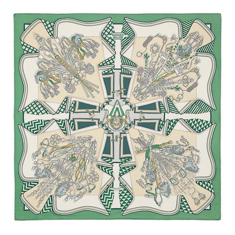 HERMES Шёлковый шарф Mulberry зелёный, Green