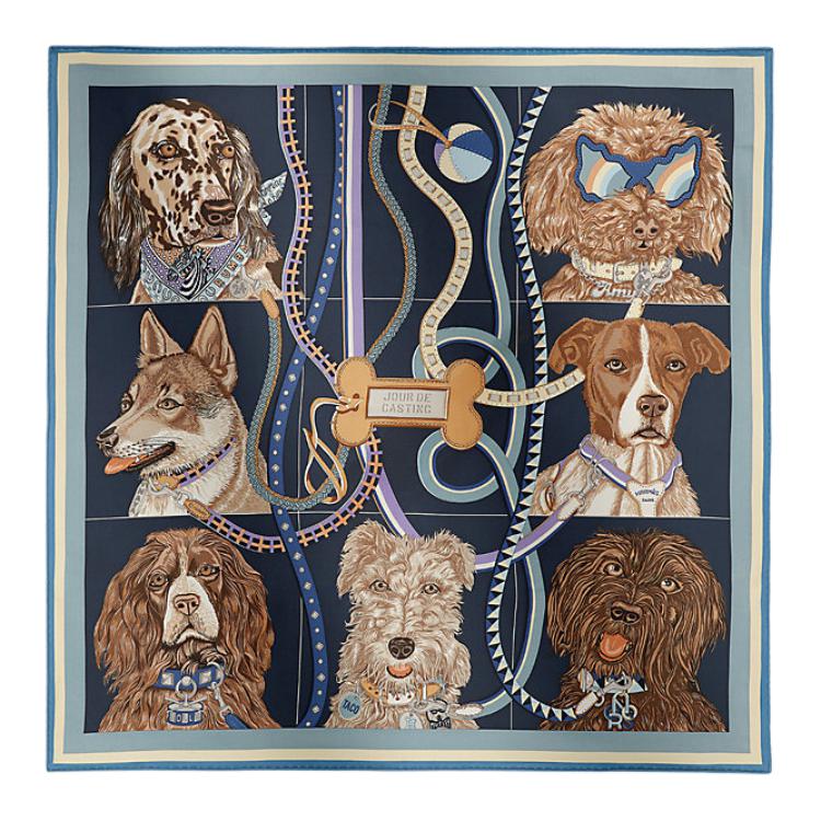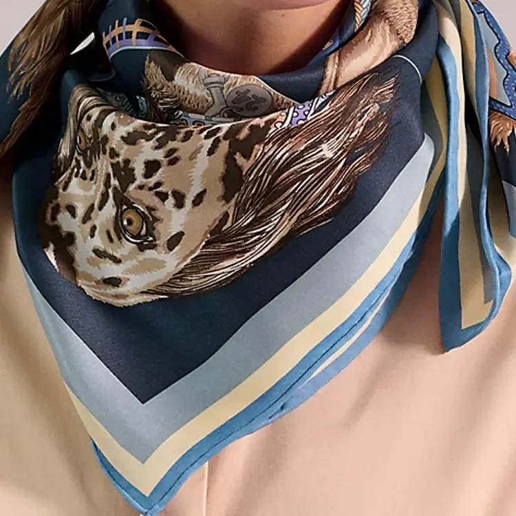 HERMES Шёлковый шёлковый платок женский голубой, Blue
