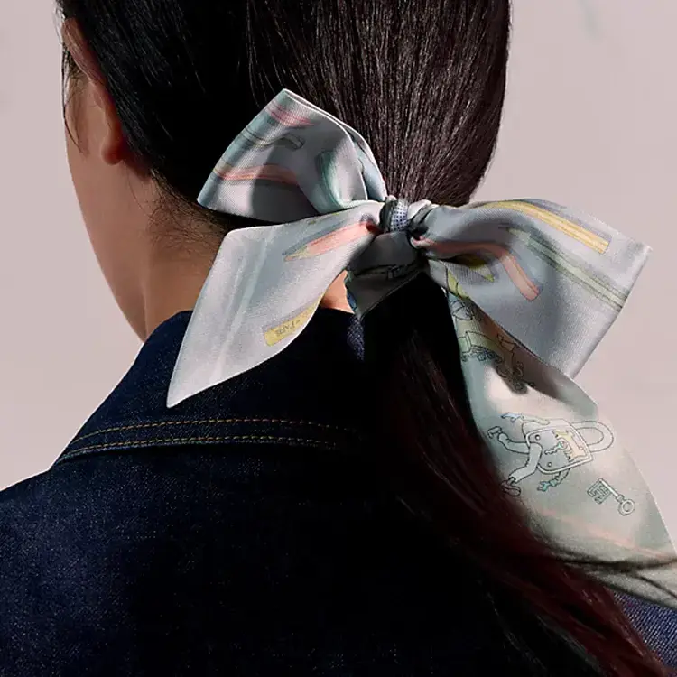 HERMES Шёлковый сатиновый шарф, Light Blue