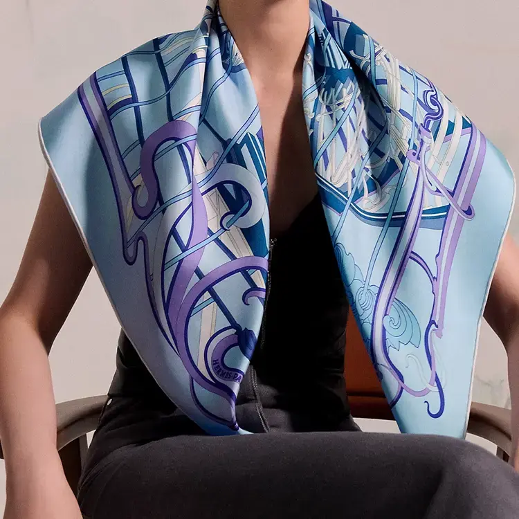 HERMES Шёлковый шарф унисекс синий, Blue 43 370₽