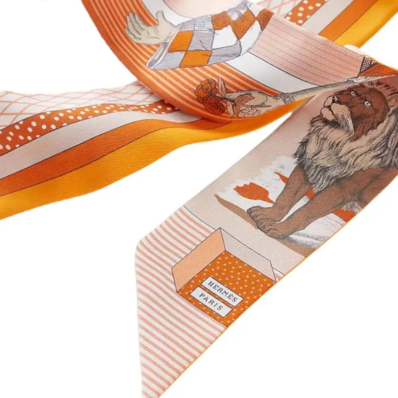 HERMES Шелковый шейный платок унисекс, Pink Apricot/Deep Orange/Caramel