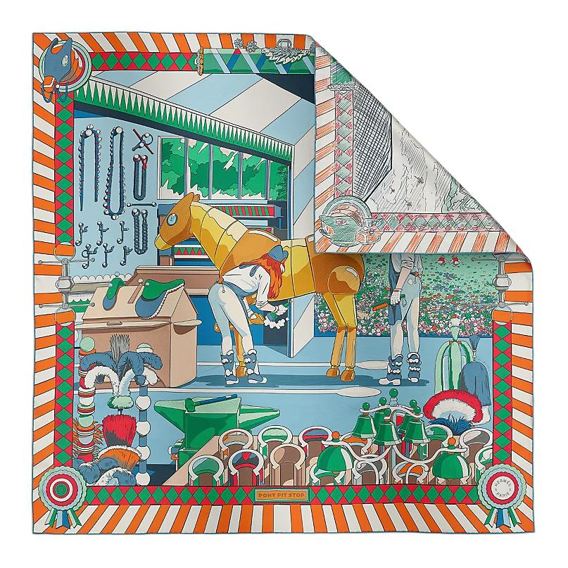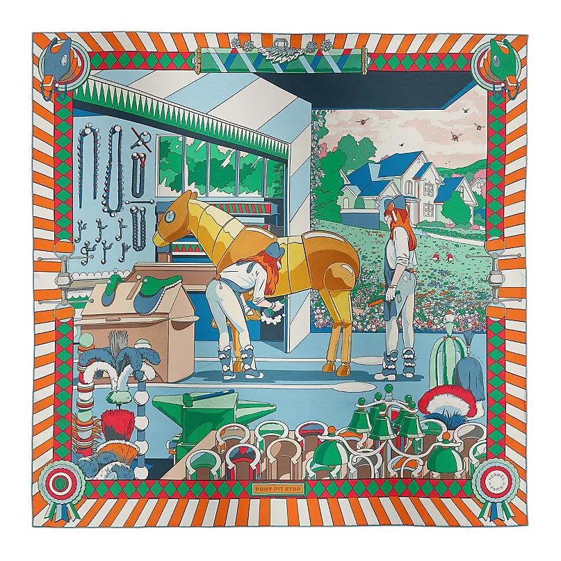 HERMES Шёлковый шарф, Green/Blue/Orange