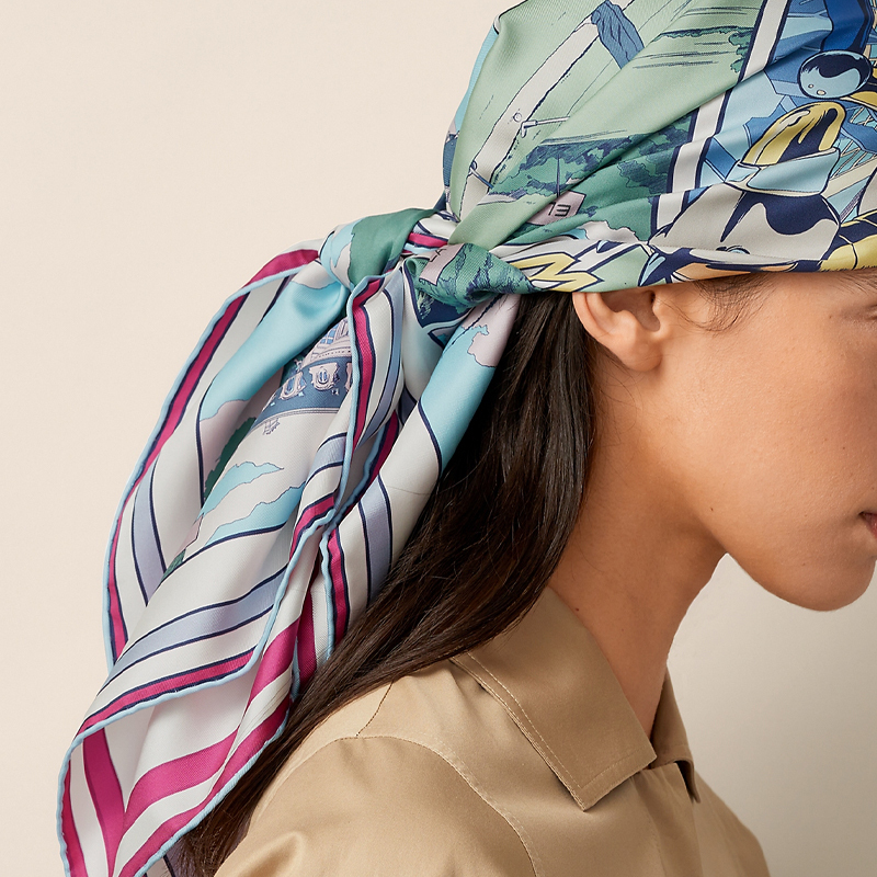 HERMES Шёлковый шарф, Mont Blanc/Vertical/Rose
