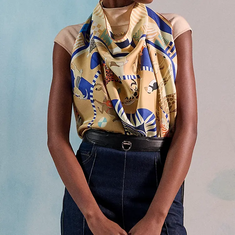 HERMES Шёлковый шёлковый шарф унисекс бежевый, Beige