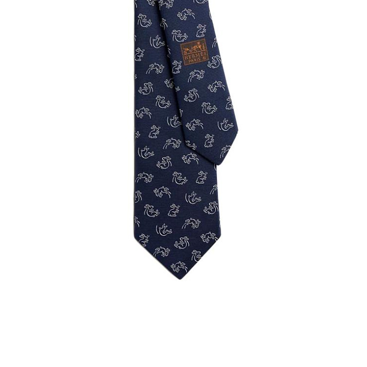 HERMES Шелковый галстук мужской морской синий, Marine Blue