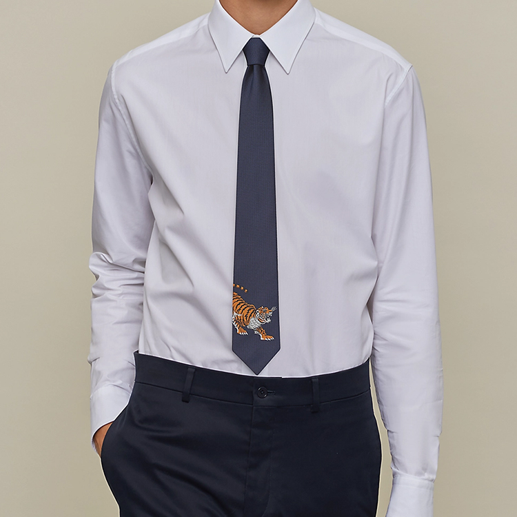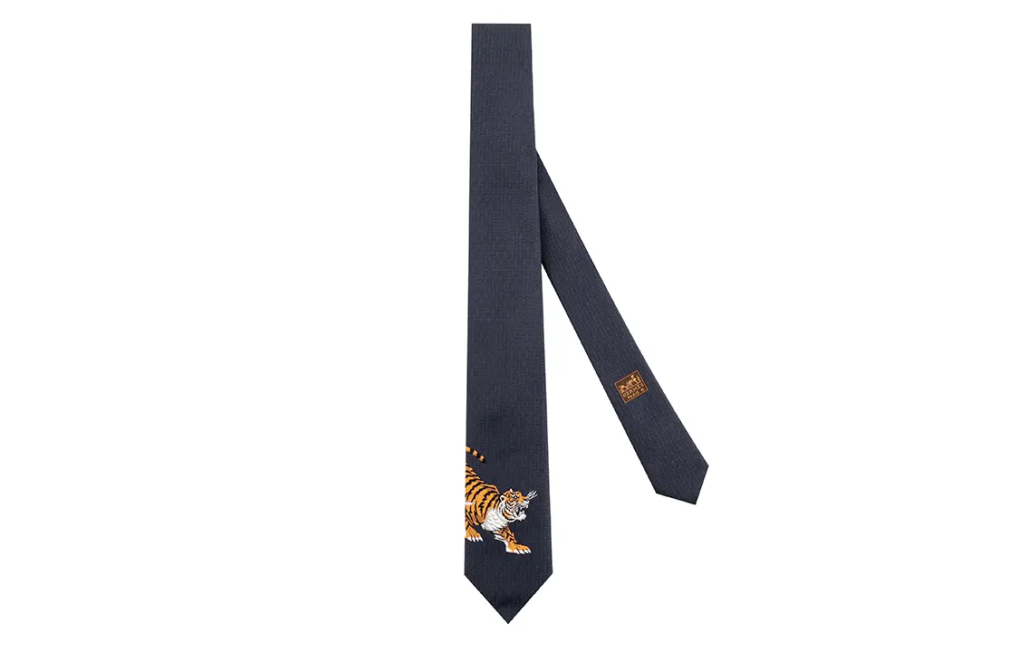 HERMES Шелковый галстук мужской морской синий, Marine Blue