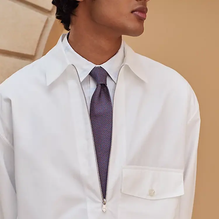 HERMES Шелковый галстук мужской морской синий, Marine Blue