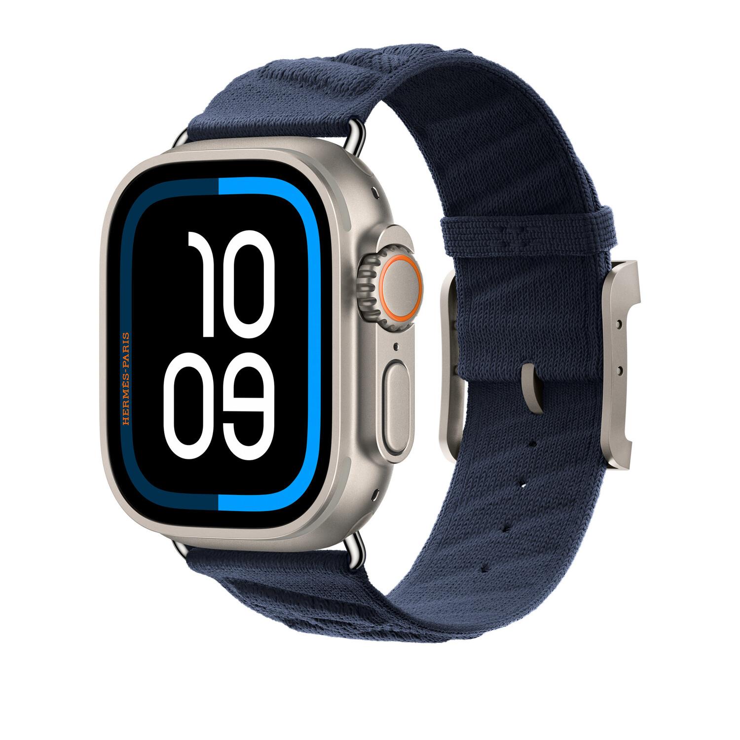 HERMES Часы Strap Apple Compatibility Polyamide Yarn Material 49mm, Bleu Nuit Midnight Blue