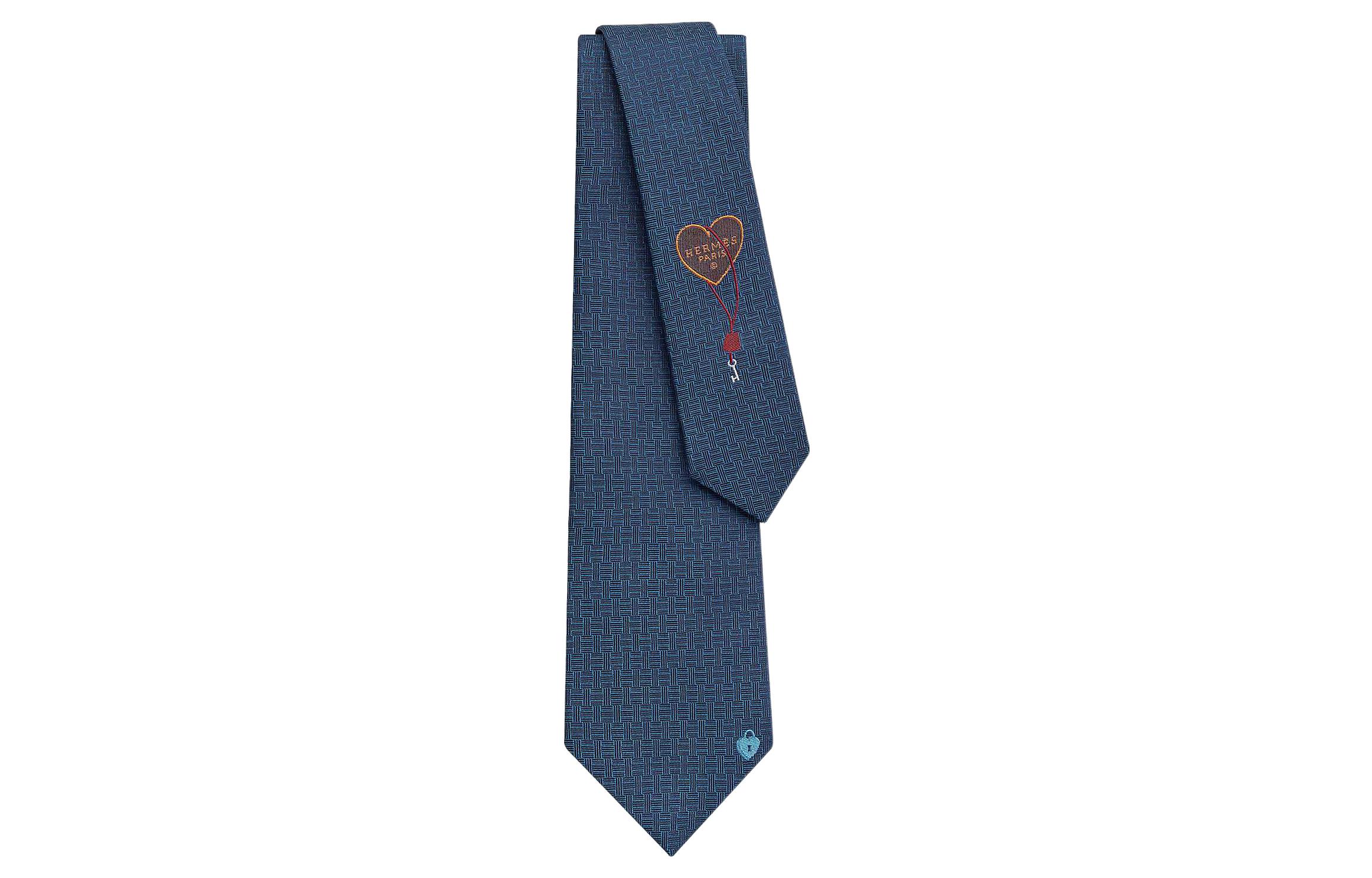 HERMES Шелковый галстук Мужской Темно-синий, Dark Blue