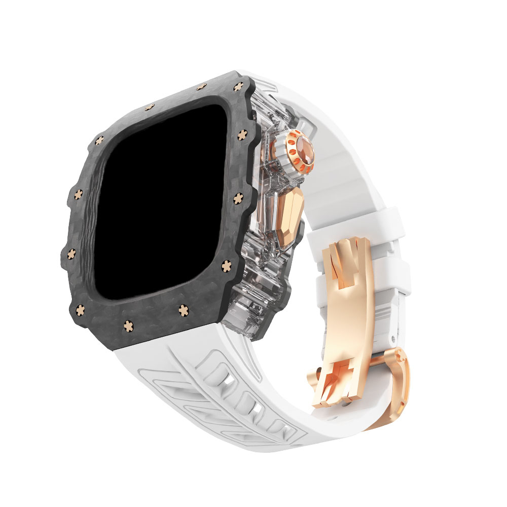 HUALIMEI Часы Strap Apple Compatibility Fluoroelastomer Material 165mm~210mm 60mm, Translucent middle frame + original black butterfly buckle black belt 15 682₽