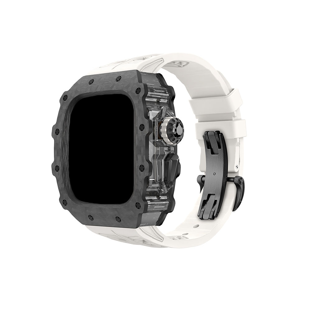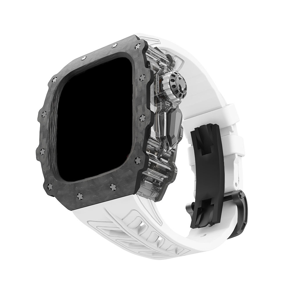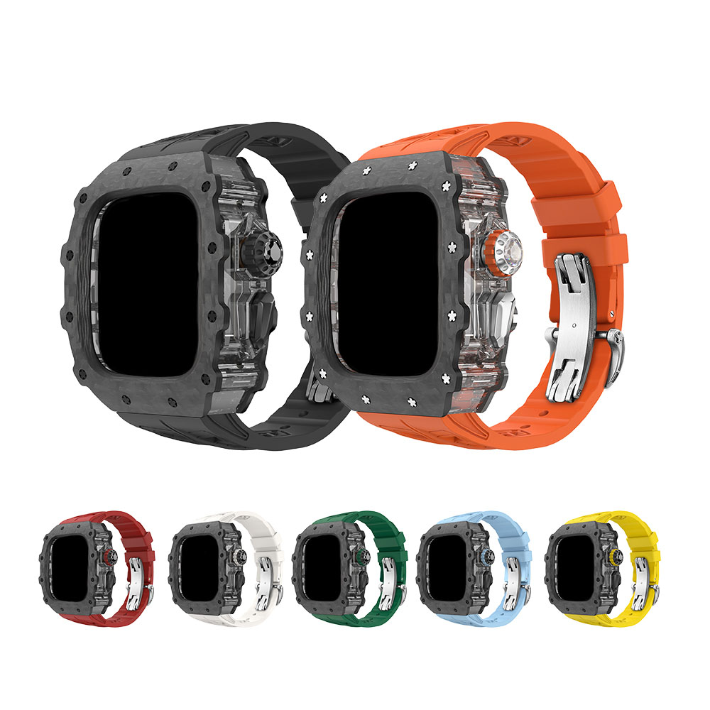 HUALIMEI Часы Strap Apple Compatibility Fluoroelastomer Material 165mm~210mm 60mm, Transparent middle frame + original silver butterfly buckle black belt