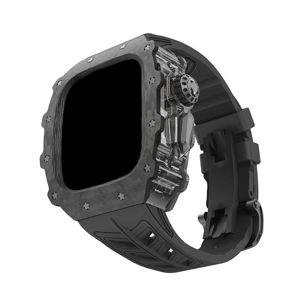 HUALIMEI Часы Strap Apple Compatibility Fluoroelastomer Material 165mm~210mm 60mm, Transparent middle frame + original silver butterfly buckle black belt 15 107₽