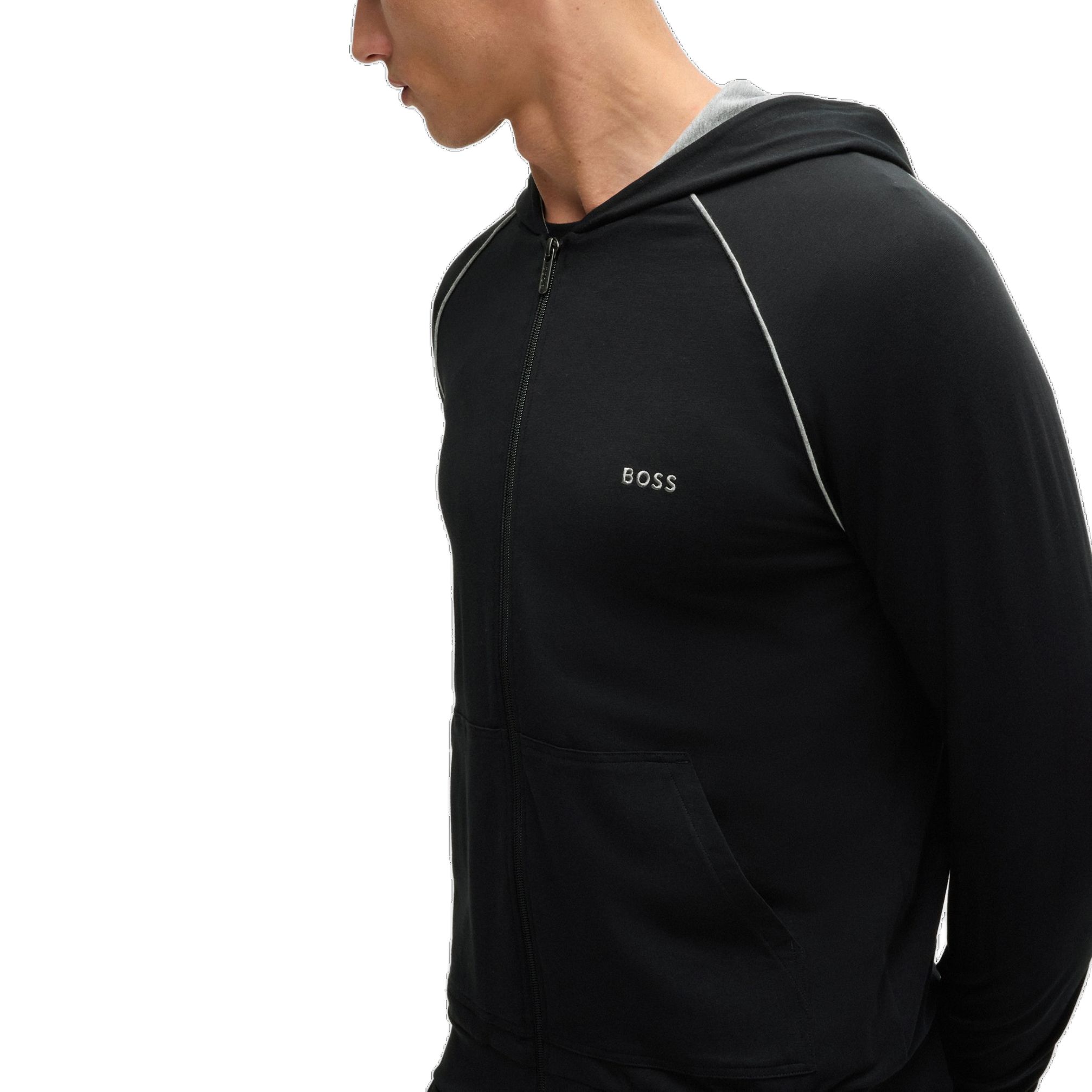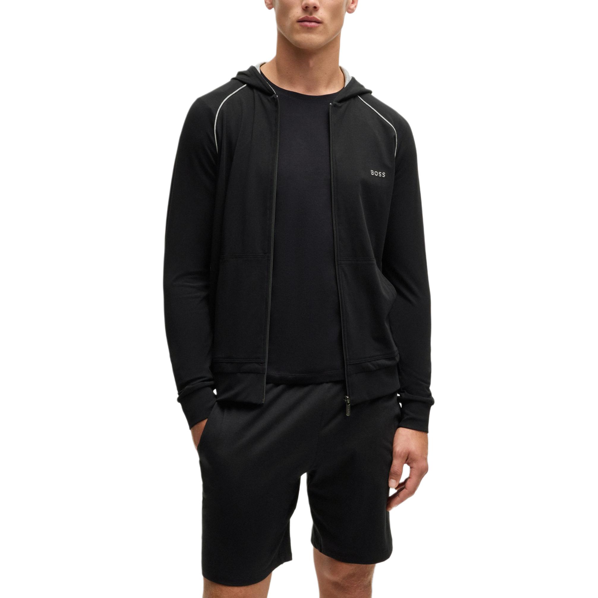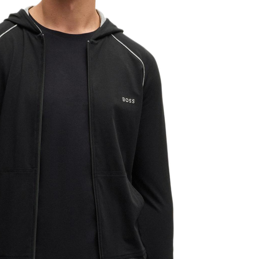 HUGO BOSS Хлопковая худи на молнии с логотипом, Black
