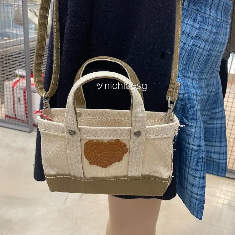 HUMAN MADE Мини-сумка через плечо из плотного холста бежевого цвета, White Khaki Multicolor
