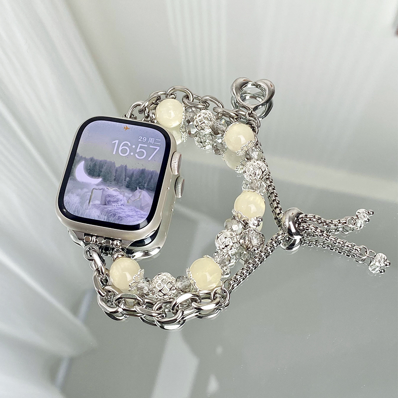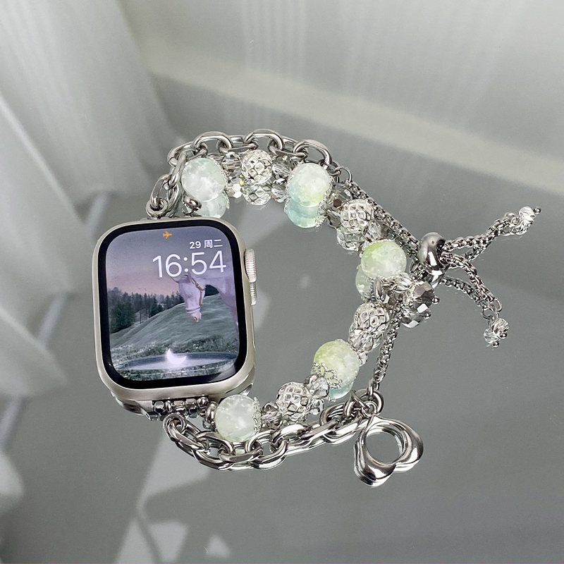 IBOANN Часы Strap Apple Compatibility Glass Beads Retractable Chain Material, Glass Beads Retractable Chain Strap-Blue 2 434₽