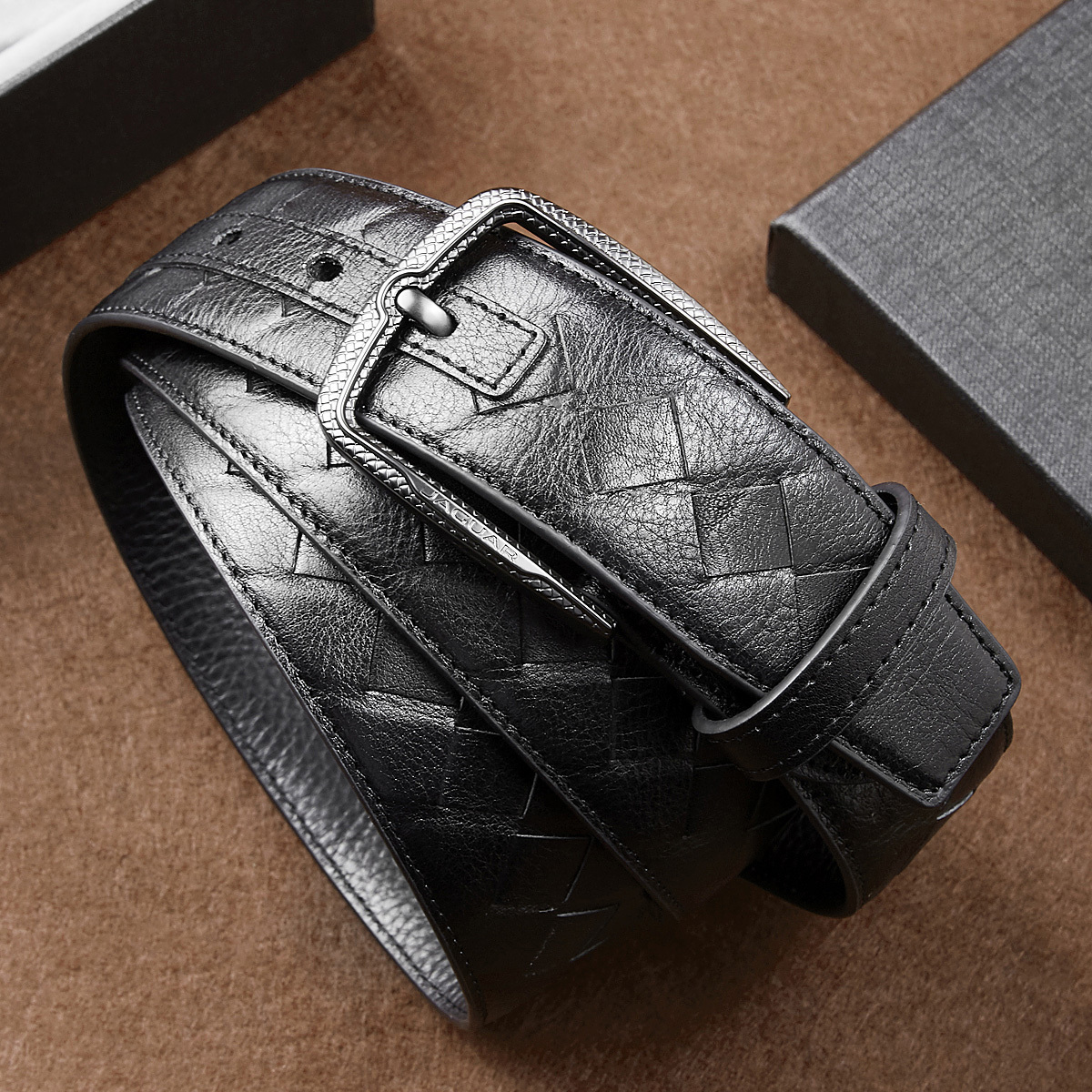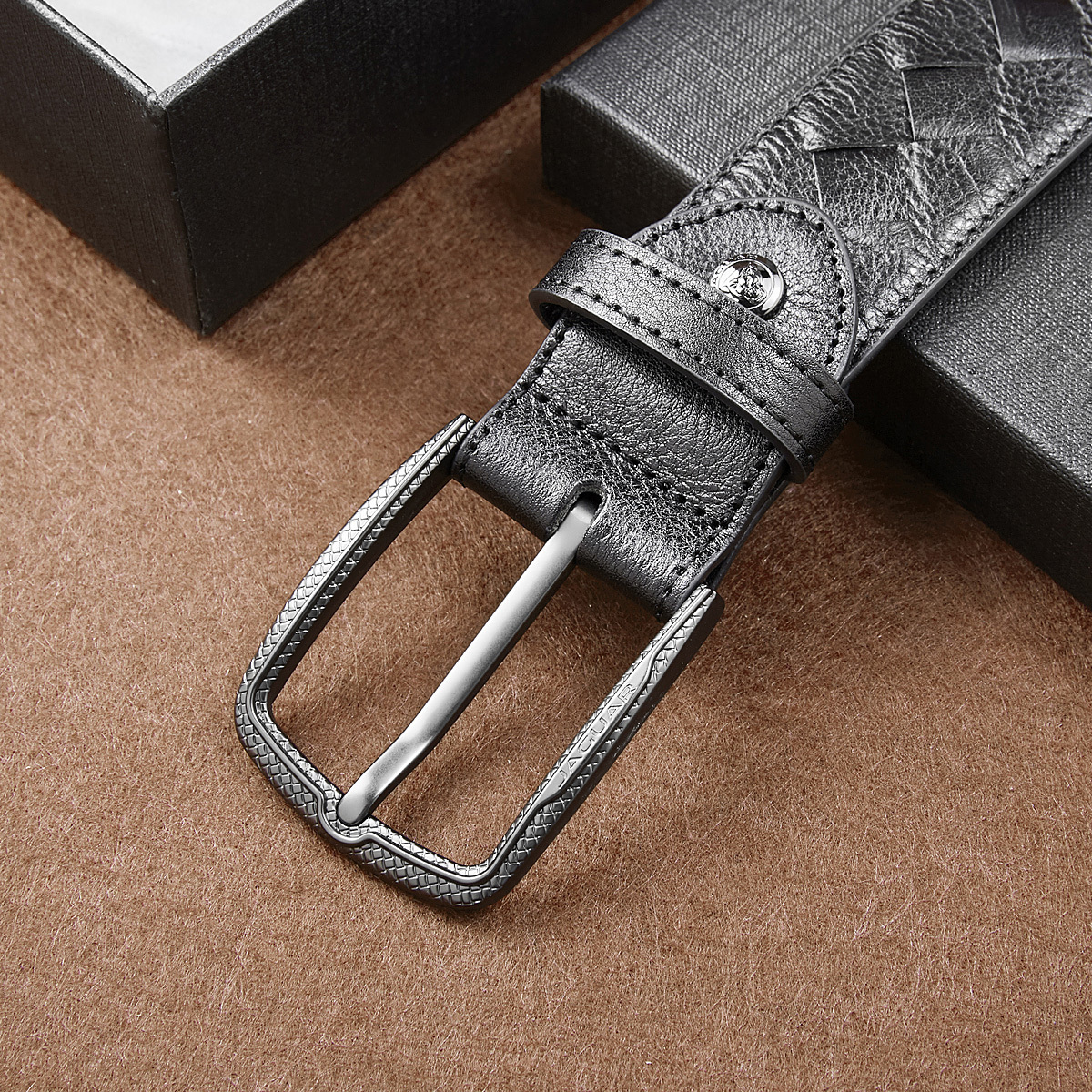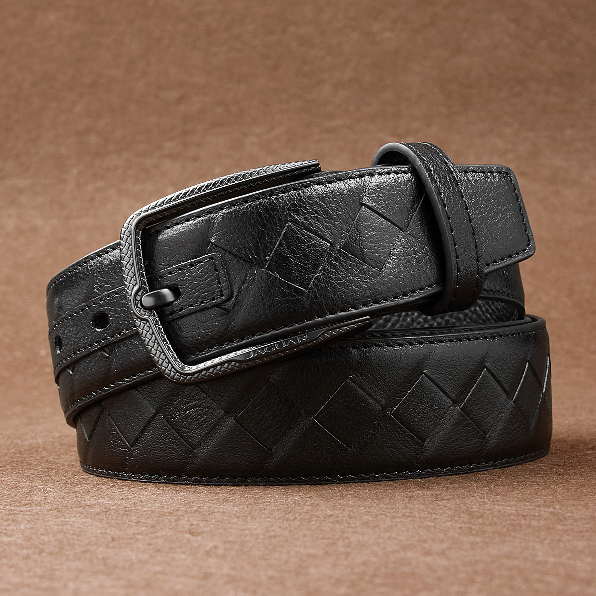JAGUAR Кожаный мужской ремень черный, Black