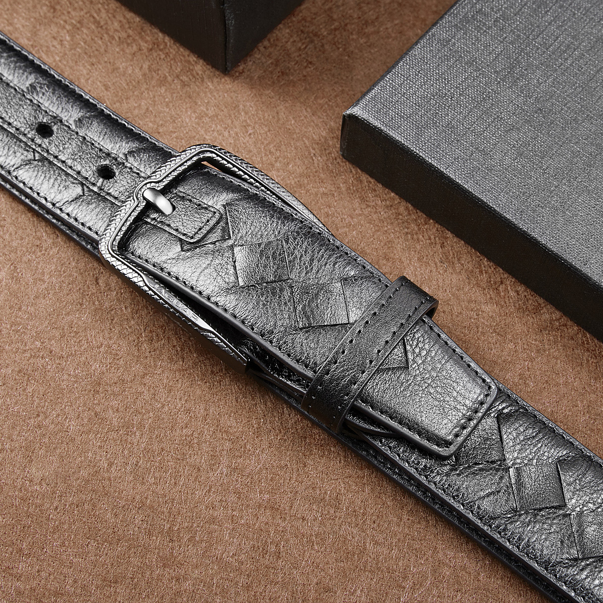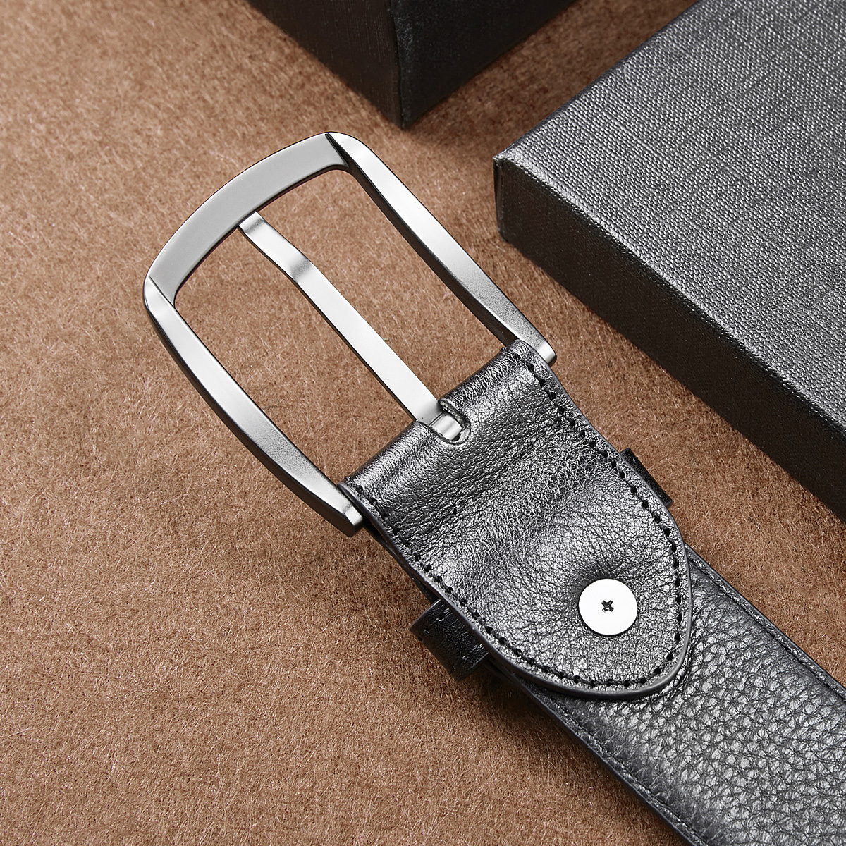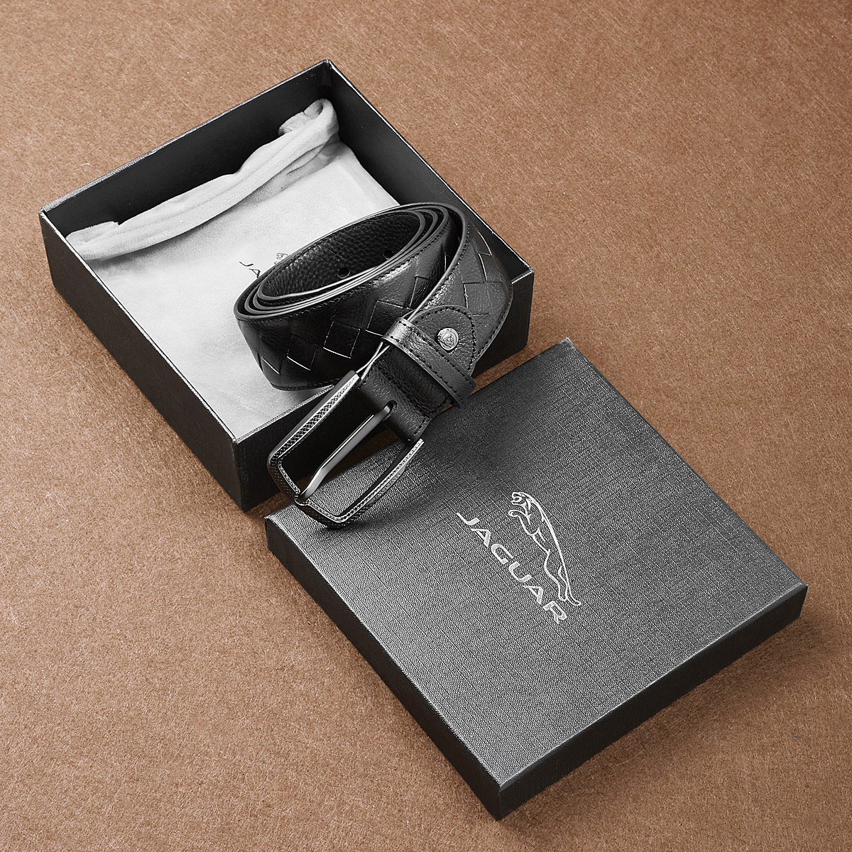 JAGUAR Кожаный мужской ремень черный, Black