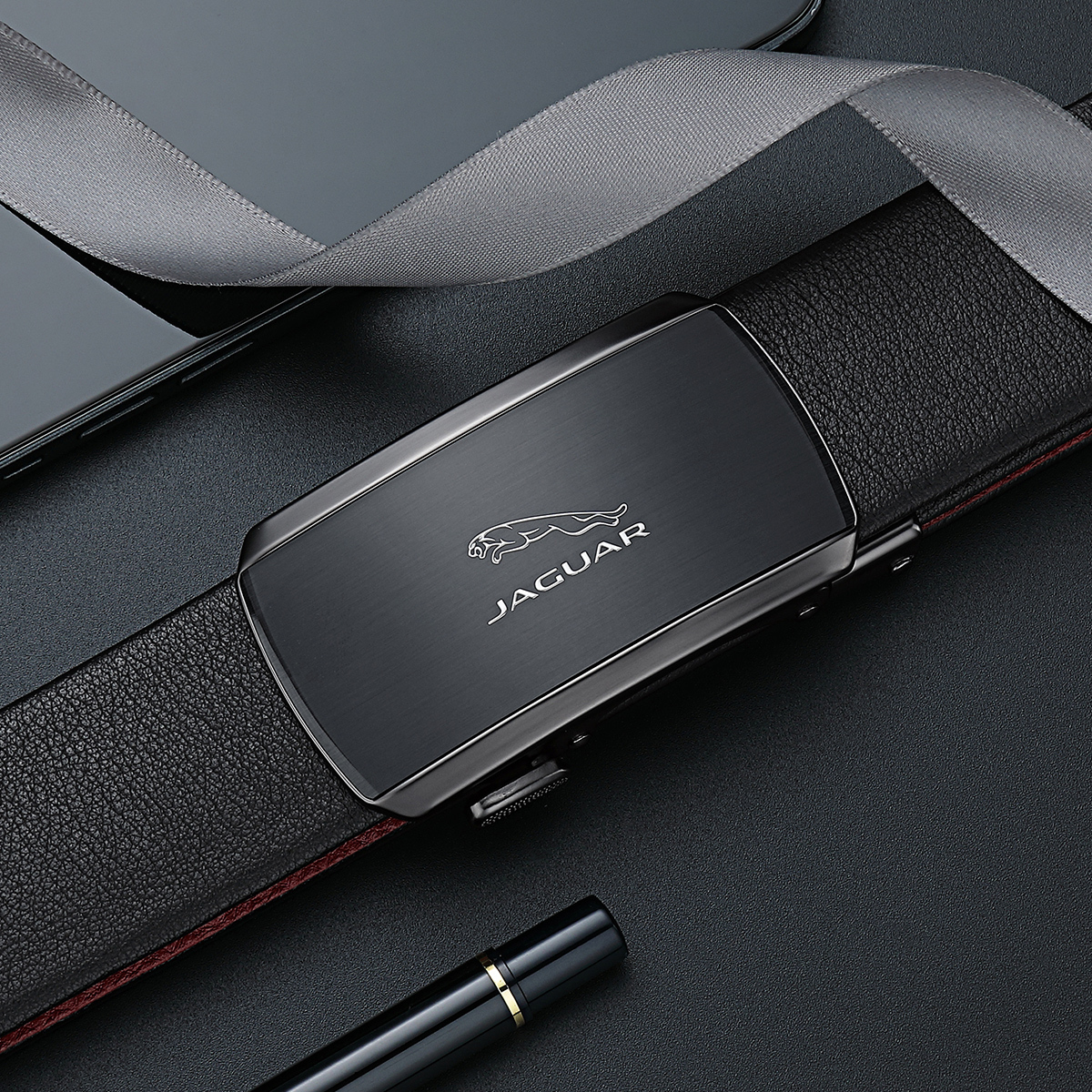 JAGUAR Кожаный мужской ремень черный, Black