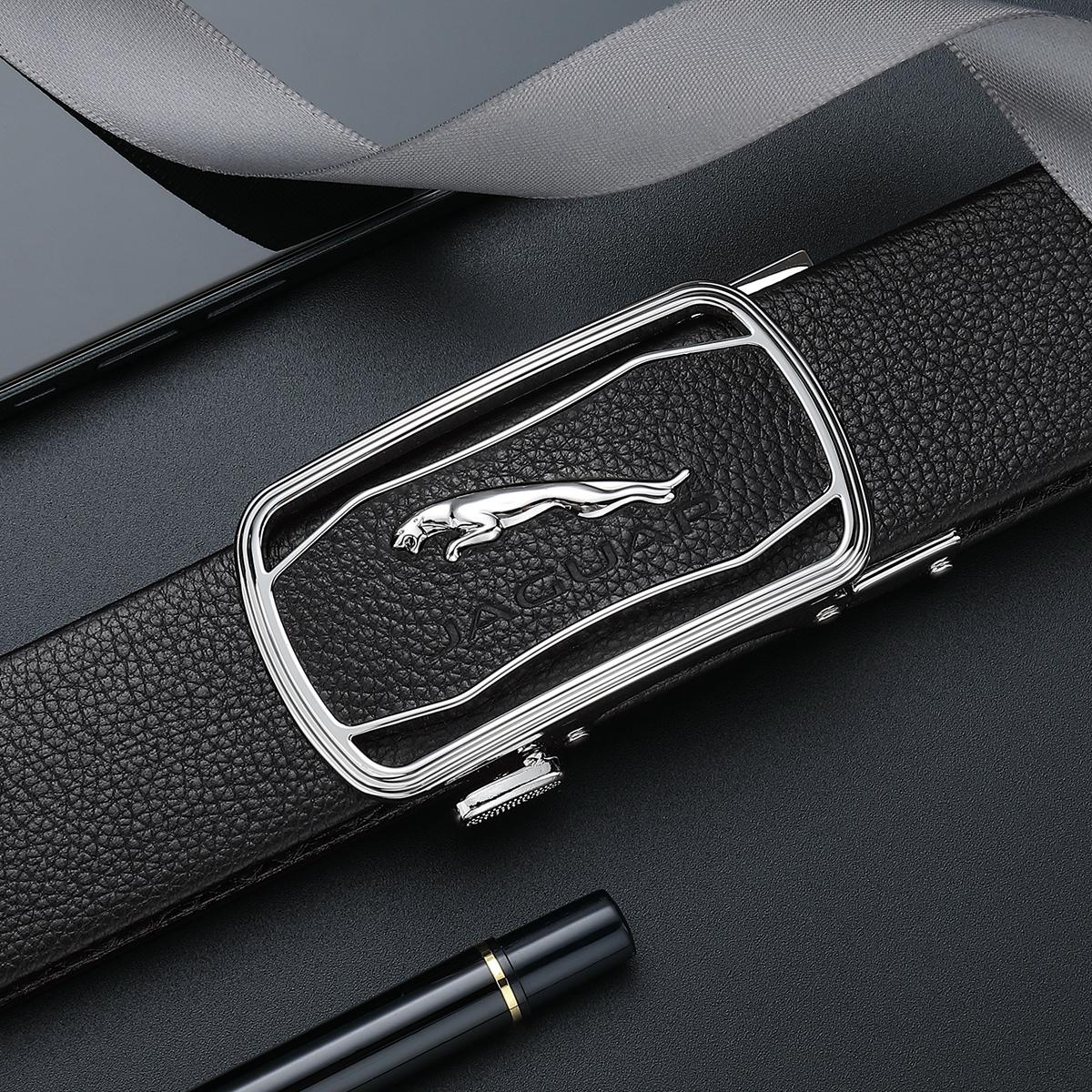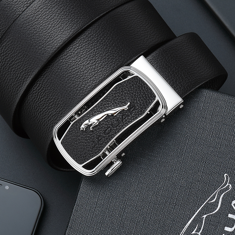 JAGUAR Кожаный мужской ремень черный, Black
