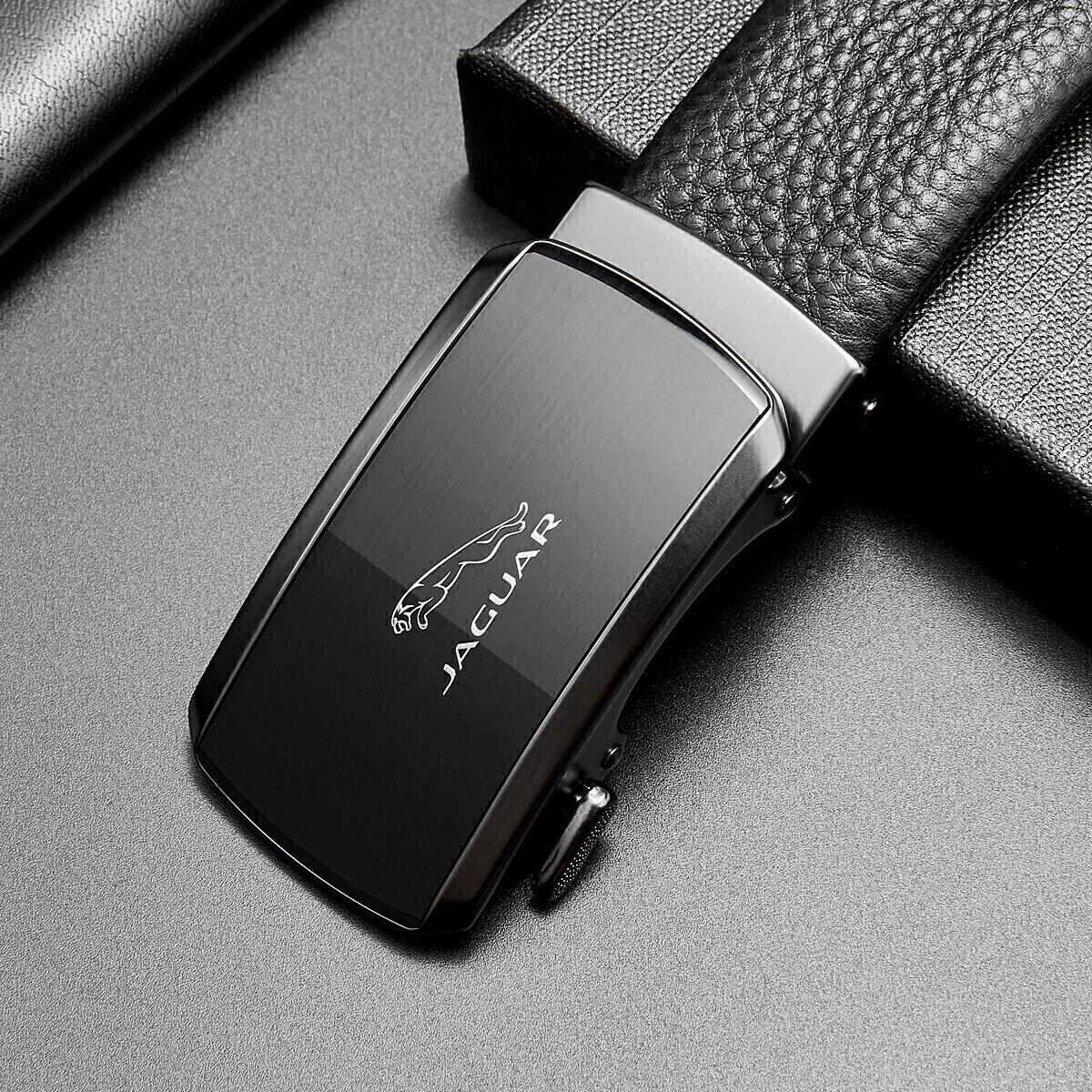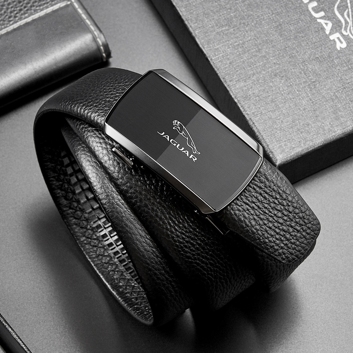 JAGUAR Кожаный мужской ремень черный, Black