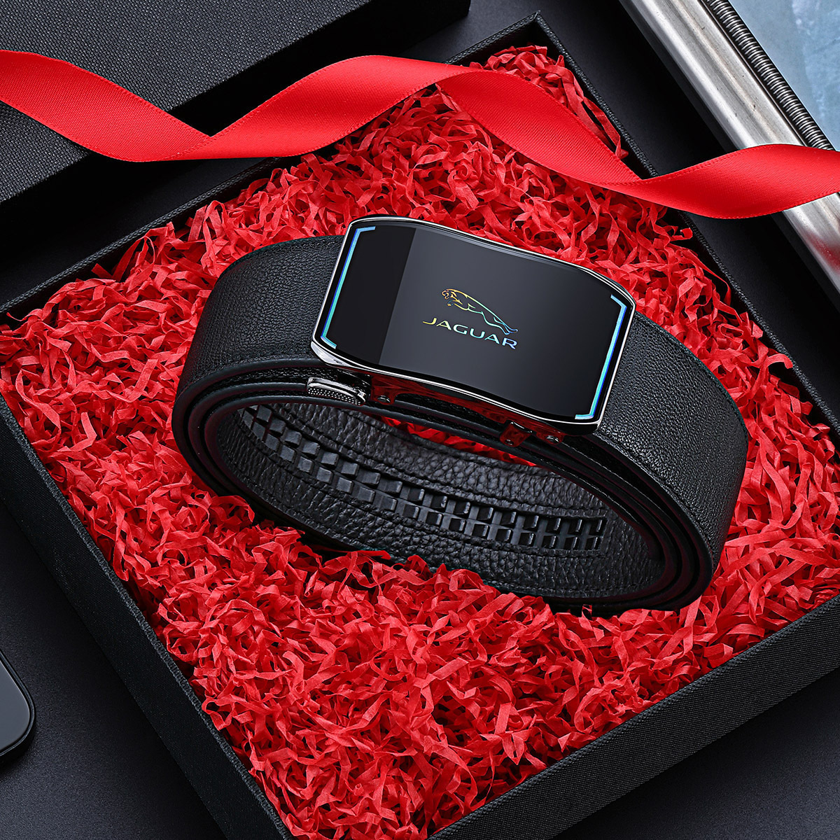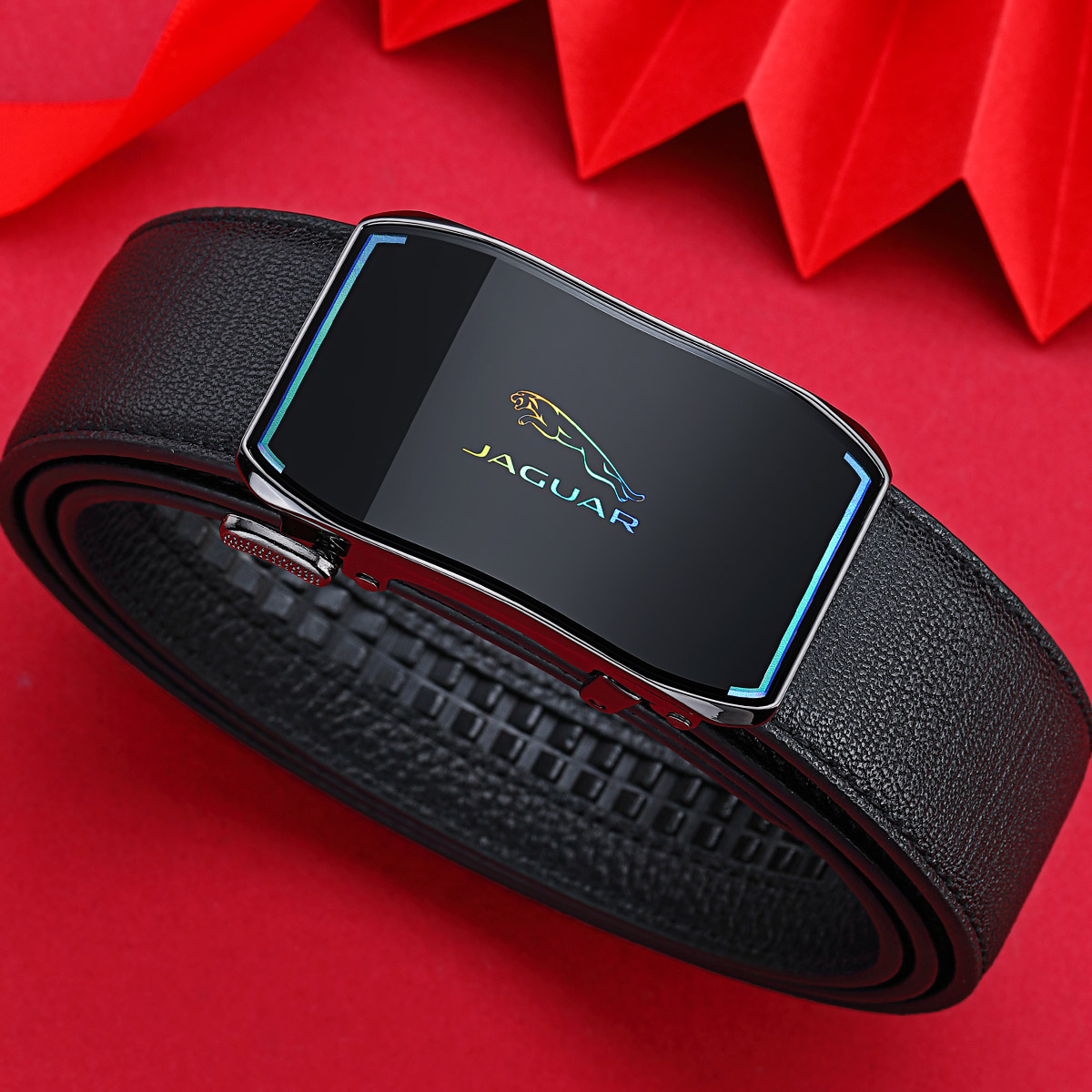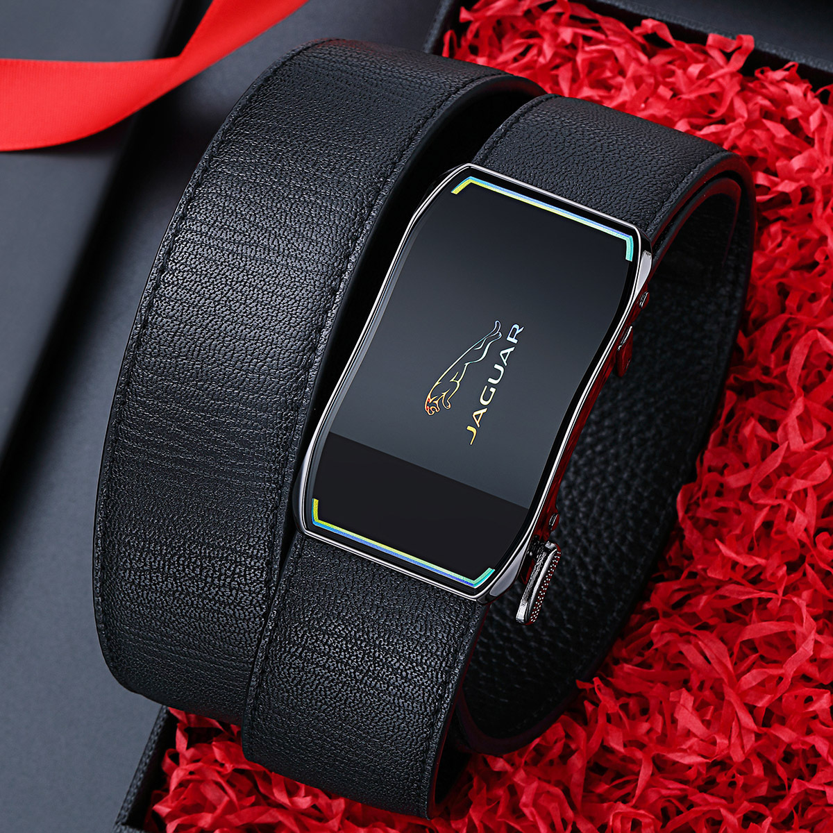 JAGUAR Кожаный мужской ремень черный, Black