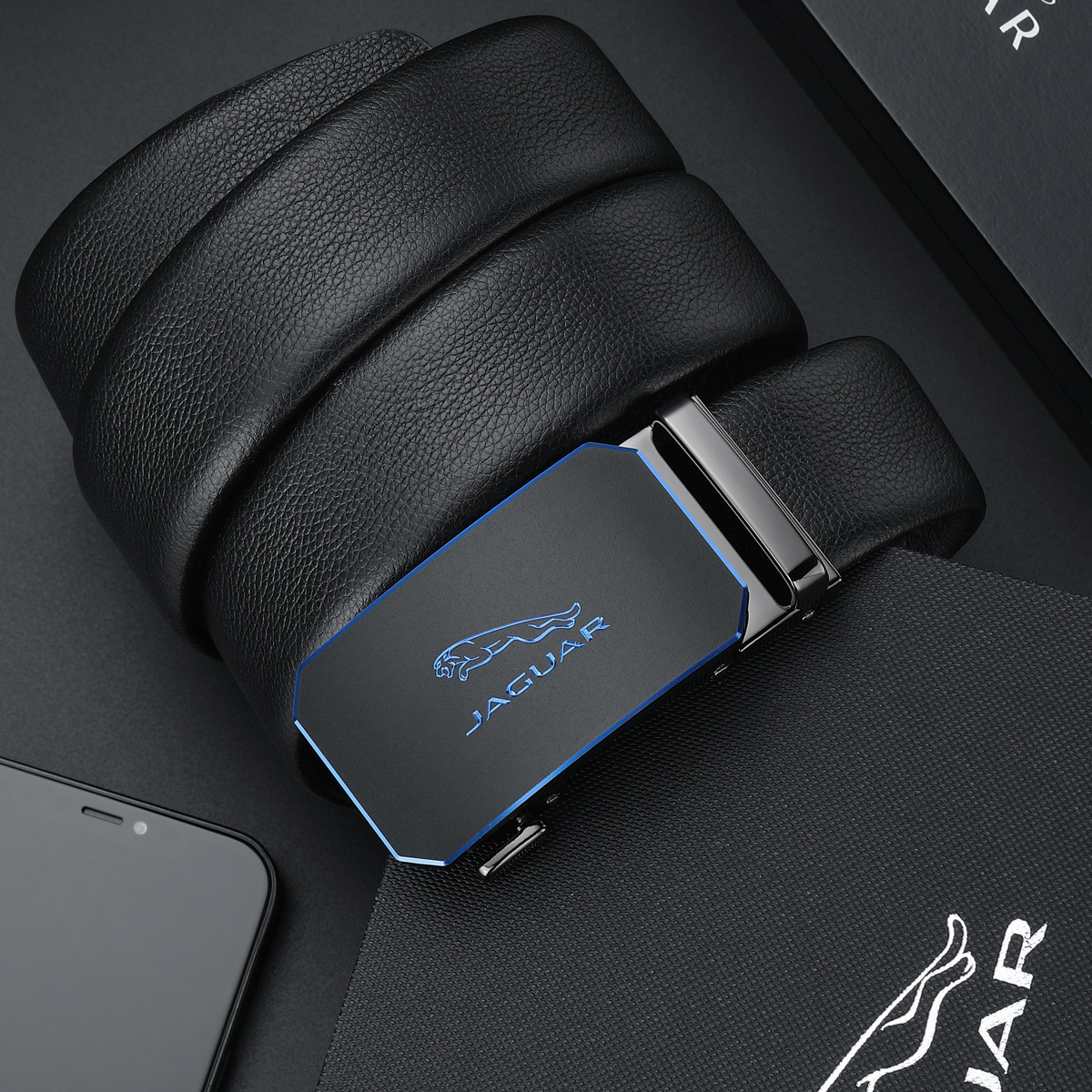 JAGUAR Кожаный мужской ремень черный, Black 7 348₽