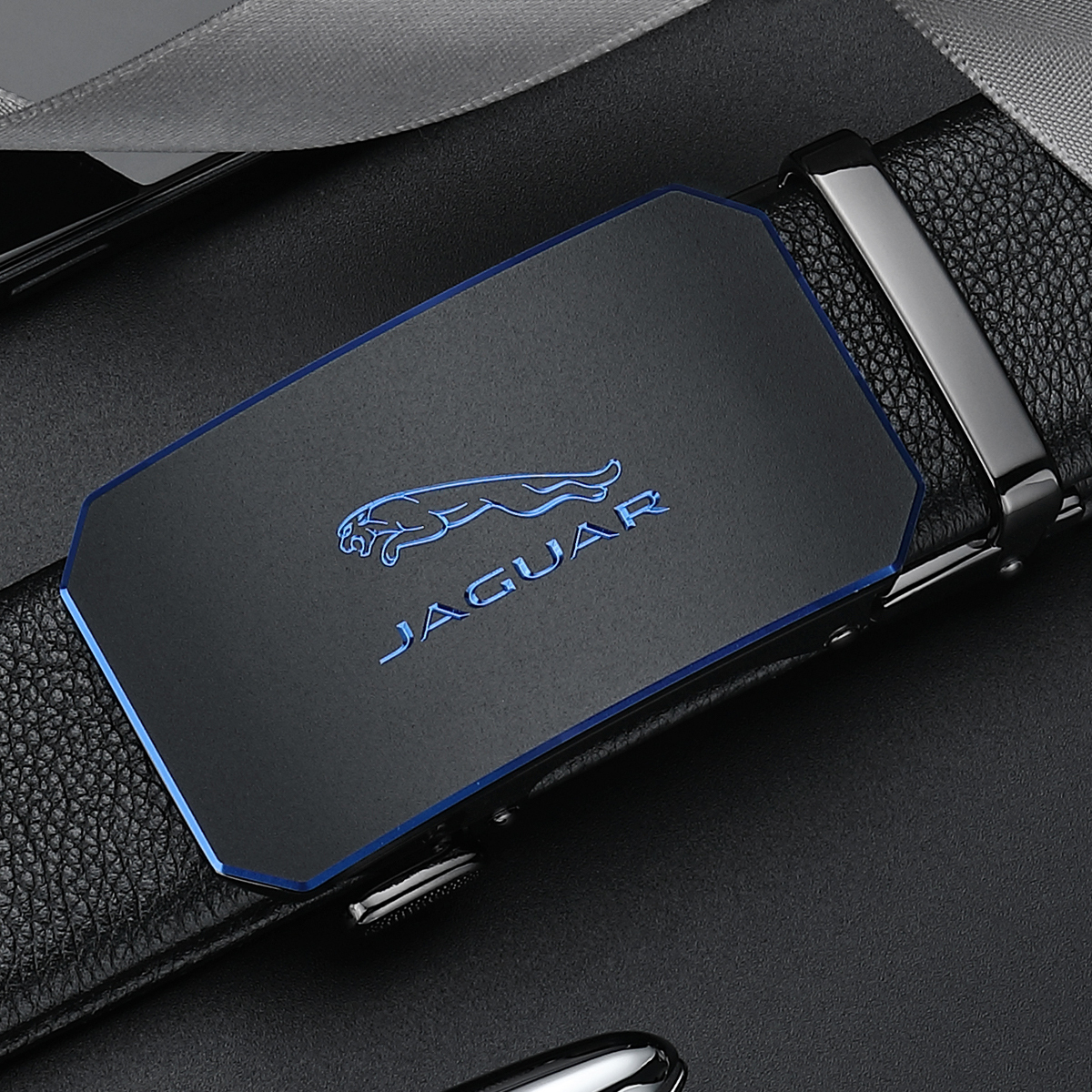 JAGUAR Кожаный мужской ремень черный, Black
