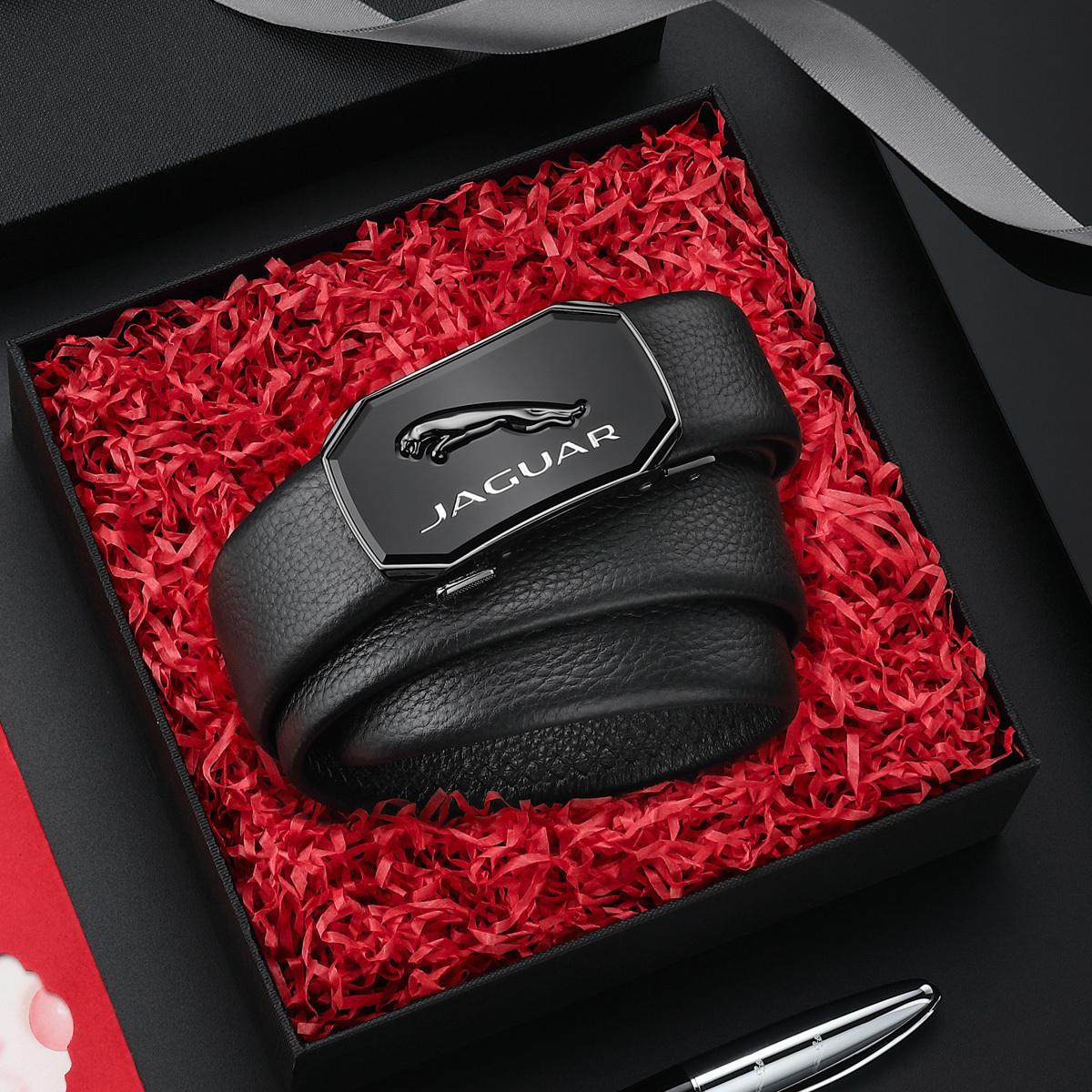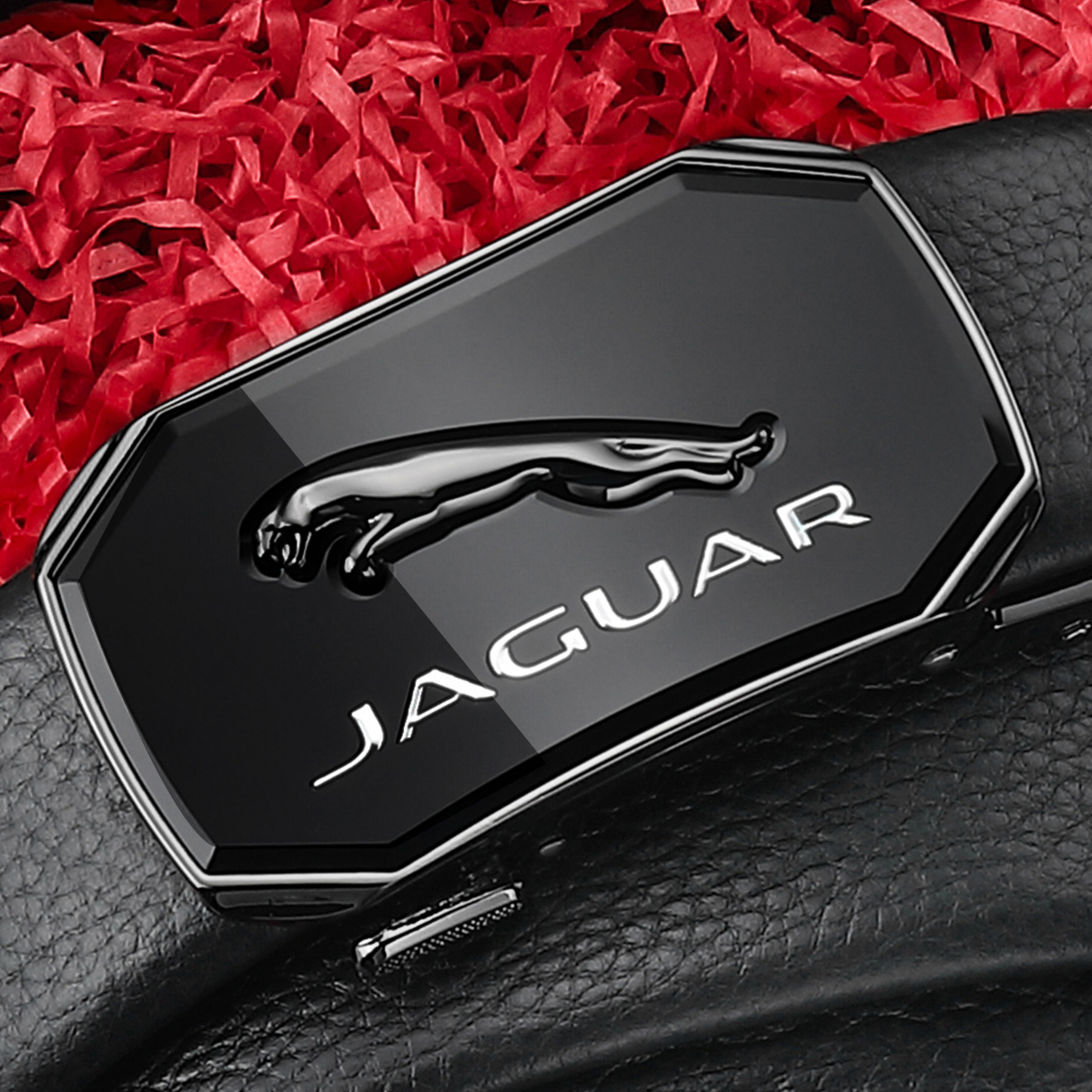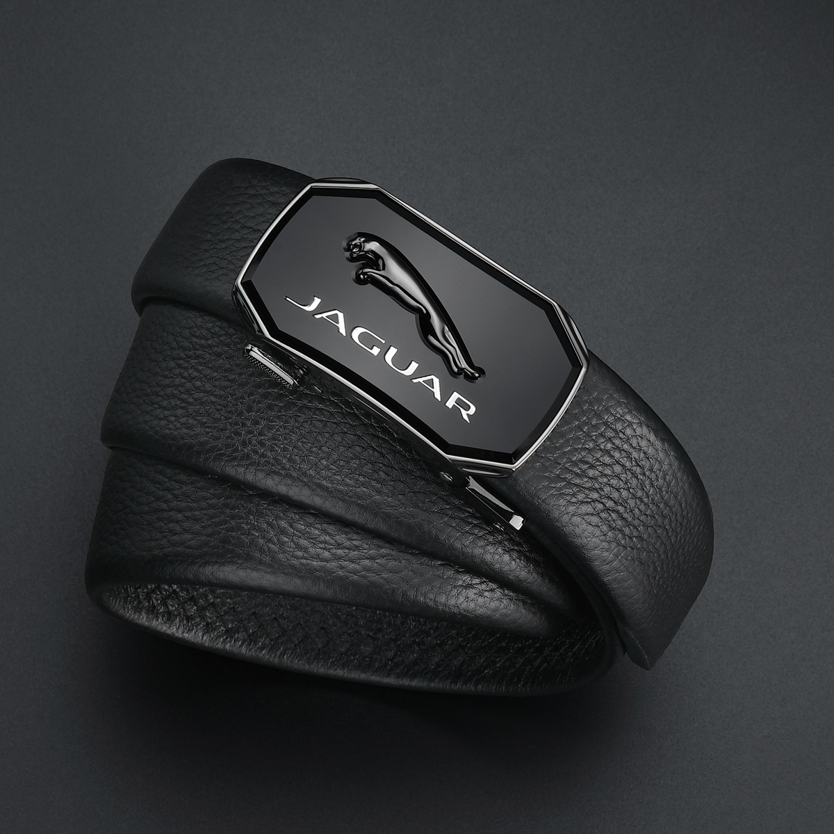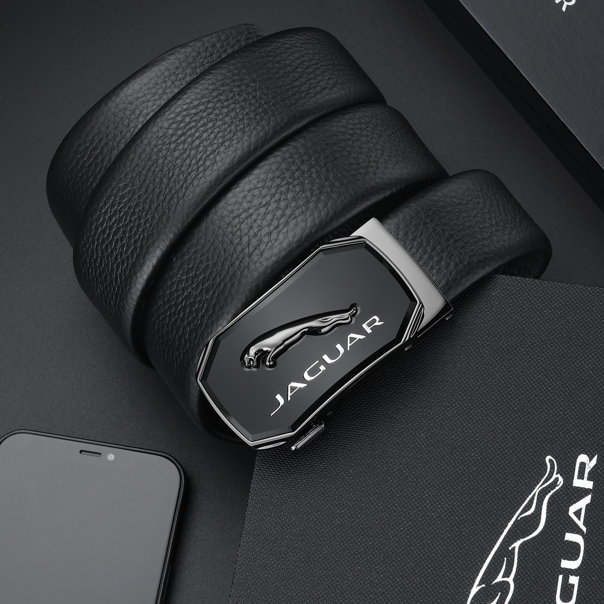 JAGUAR Кожаный мужской ремень черный, Black