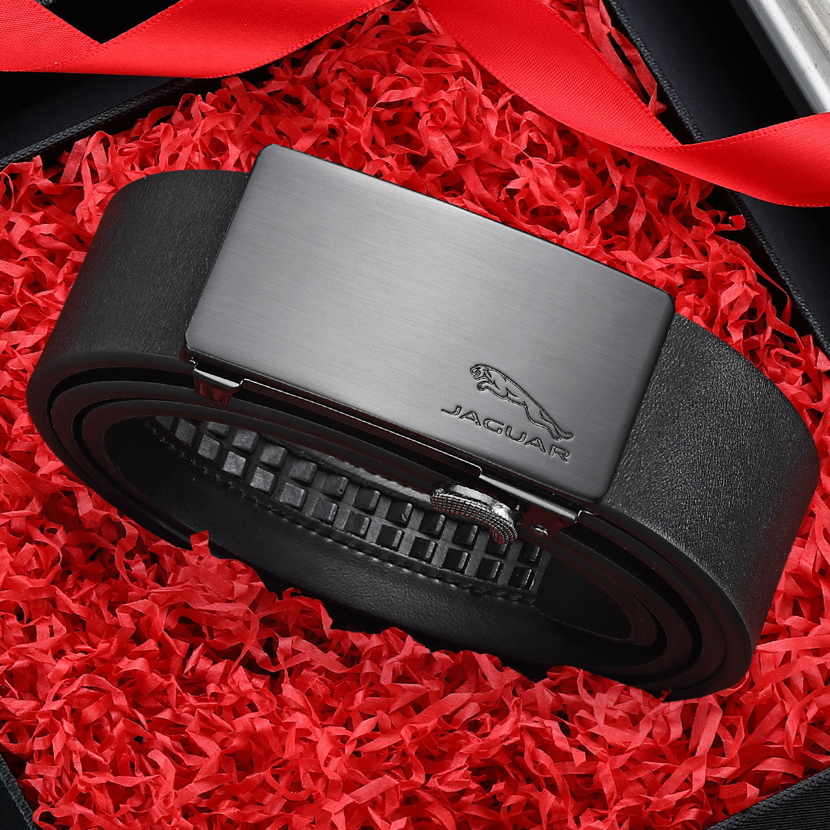 JAGUAR Кожаный мужской ремень черный, Black