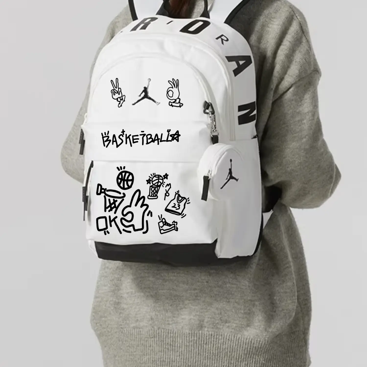 Jordan Полиэстеровый рюкзак обычный унисекс белый, Charging Cat