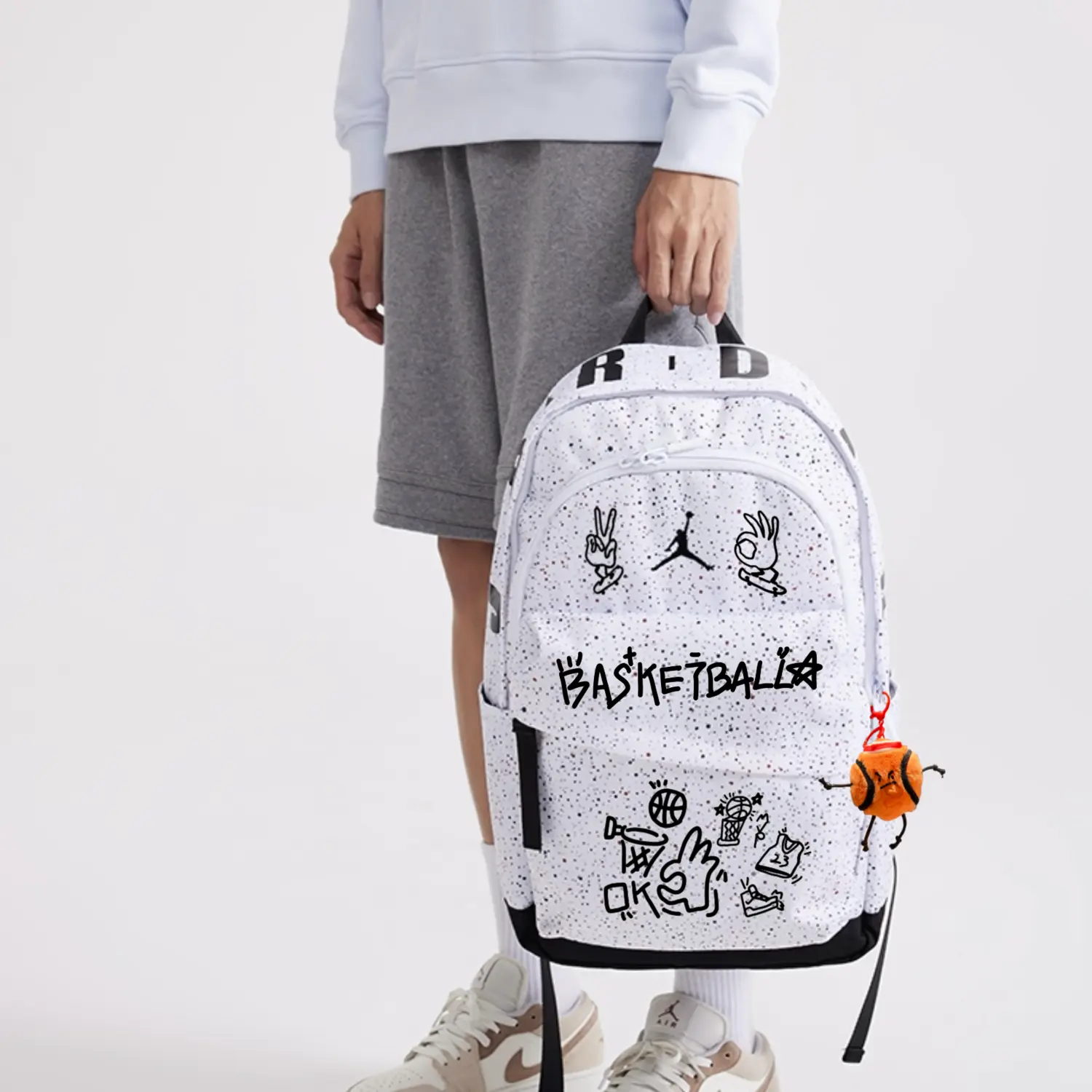 Jordan Полиэстеровый рюкзак унисекс белый, Charging Kitten