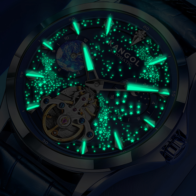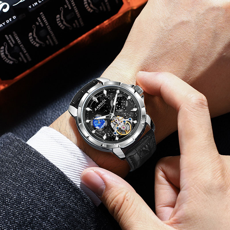 KANGOL Часы Automatic Mechanical Movement Genuine Leather Strap Watch Men's Watch Black Dial, Silver White Dial