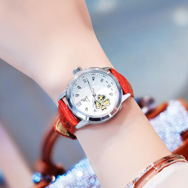 KANGOL Часы Automatic Mechanical Movement Genuine Leather Strap Watch Women's Watch Black Dial -K115