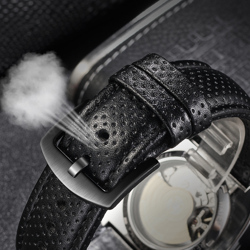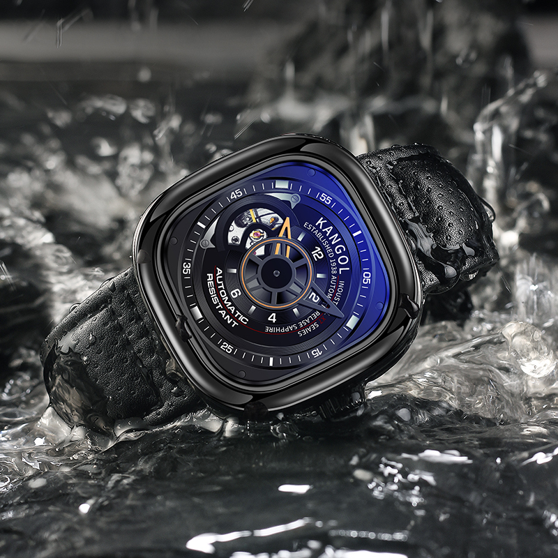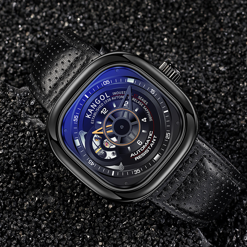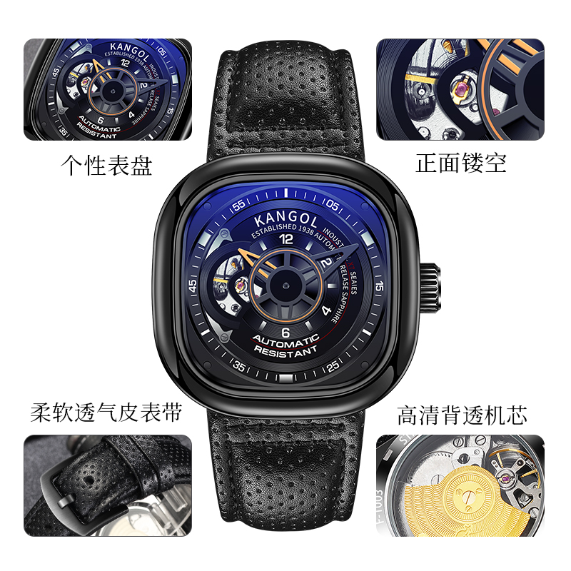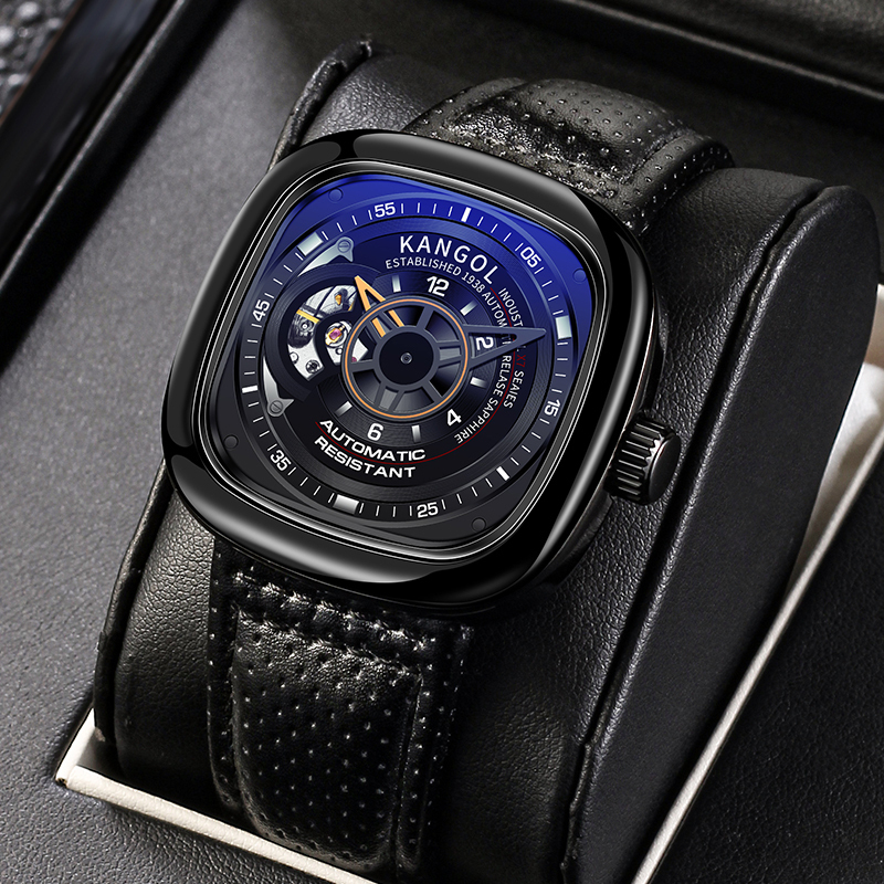 KANGOL Часы Black Friday Automatic Mechanical Movement Genuine Leather Strap Watch Men's Watch Cut-Out Dial