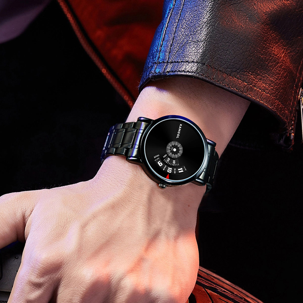 KANGOL Часы Quartz Movement Metal Strap Watch Unisex Black Dial