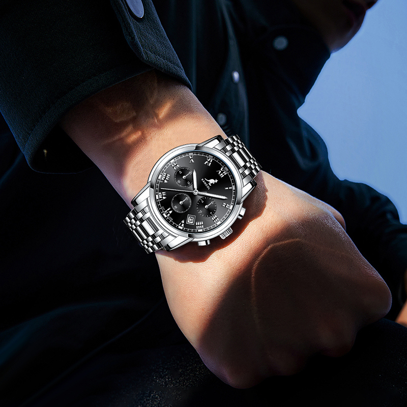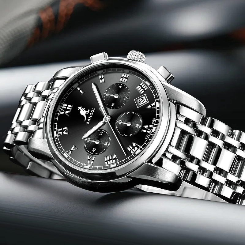 KANGOL Часы Quartz Movement Steel Strap Watch Men's Watch Black Dial, Silver Black Dial
