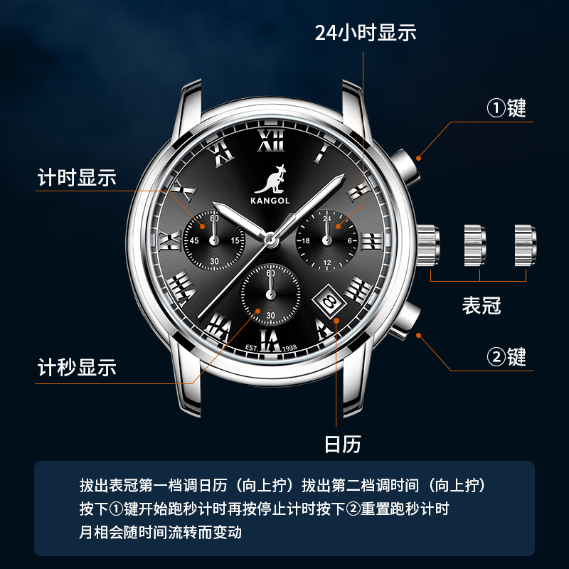 KANGOL Часы Quartz Movement Steel Strap Watch Men's Watch Black Dial, Silver White Dial 7 470₽