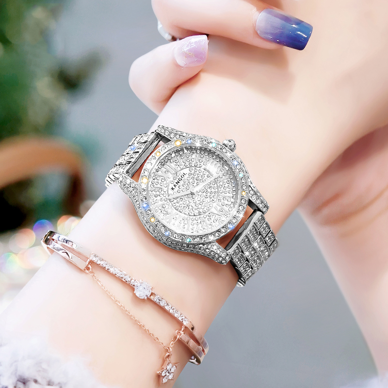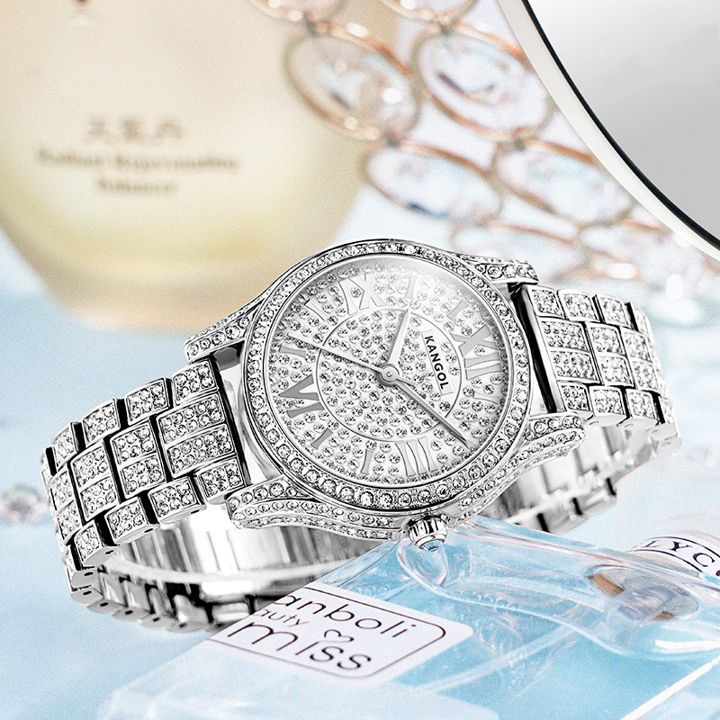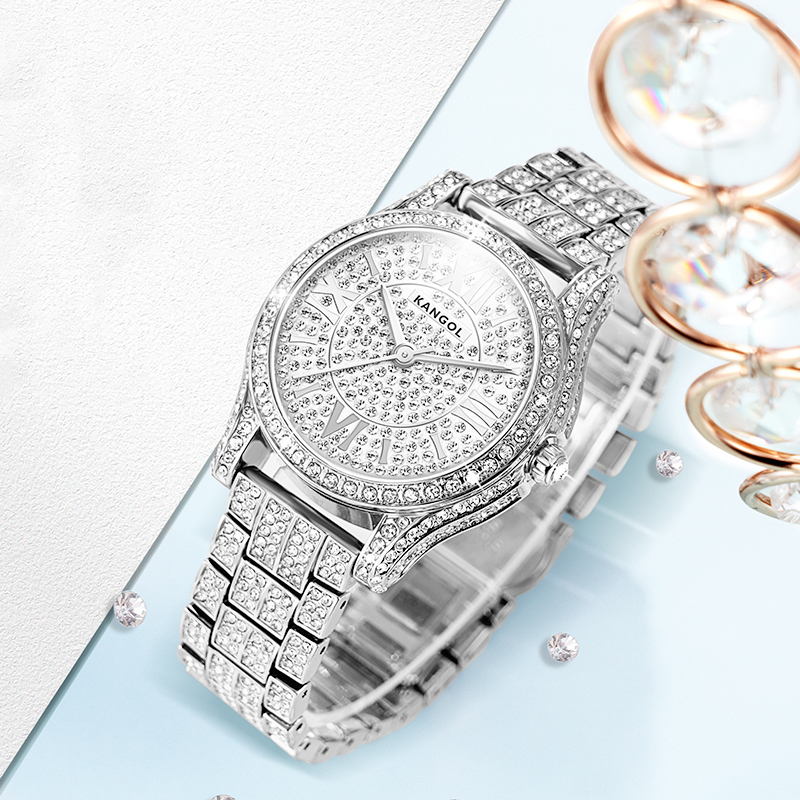 KANGOL Часы Women's Watch, Silver Band with White Dial[Custom Box+Fully Paved Diamonds Inlaid]