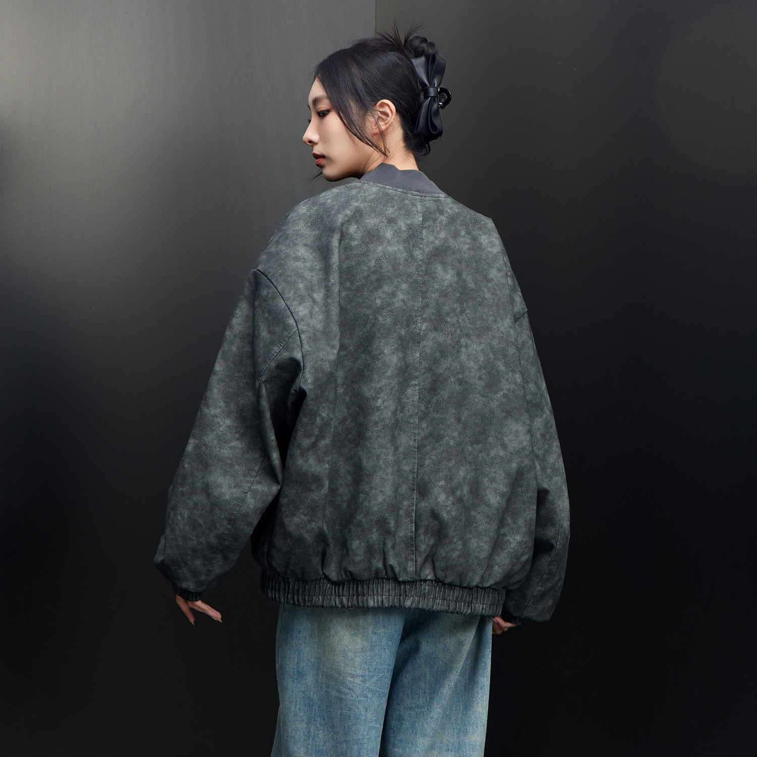 Kawasaki Кожаная куртка унисекс, Black Gray (Down)