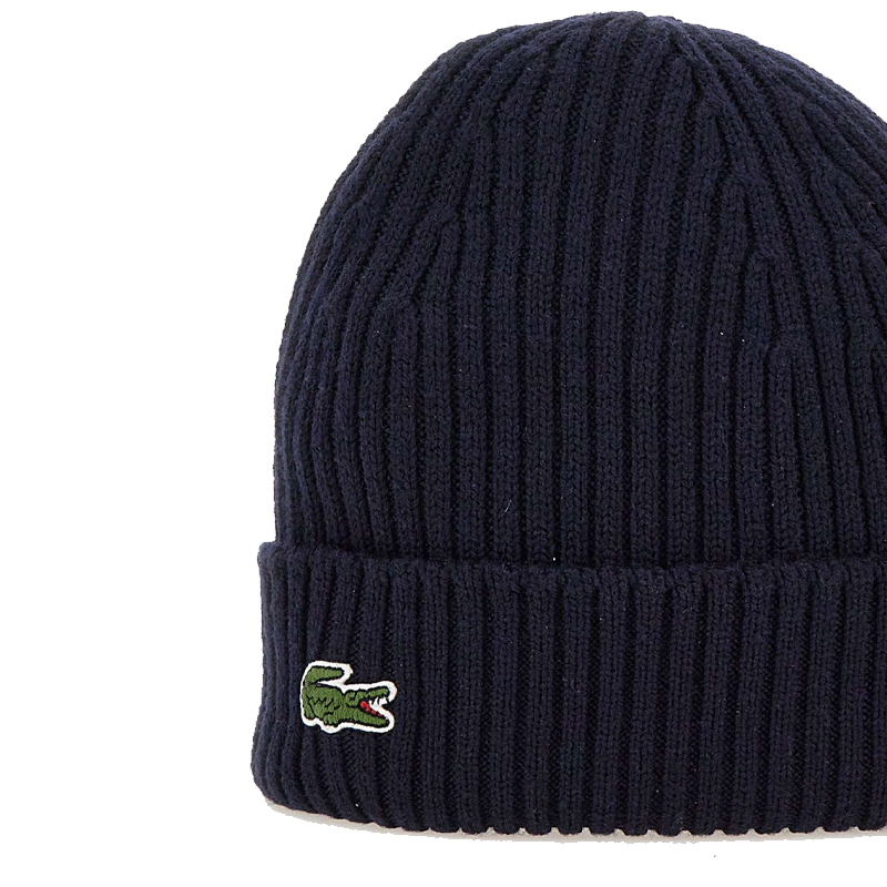 LACOSTE Вязаная ребристая ворсованная шапка, Dark Blue
